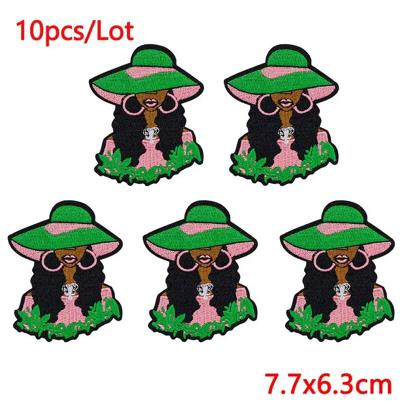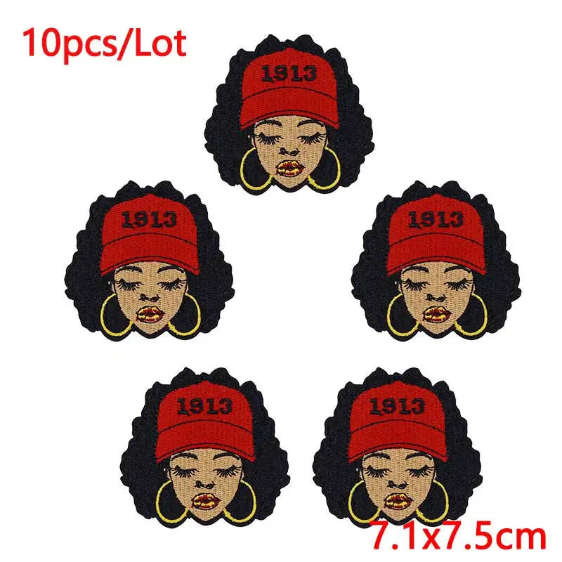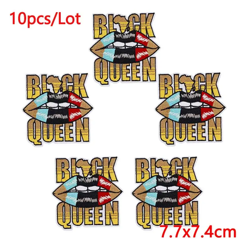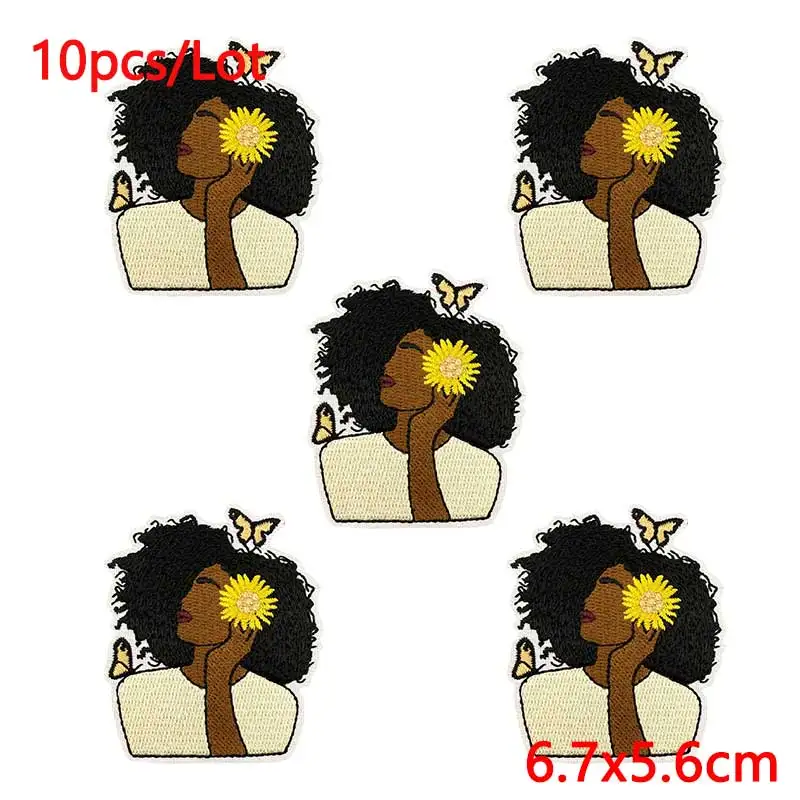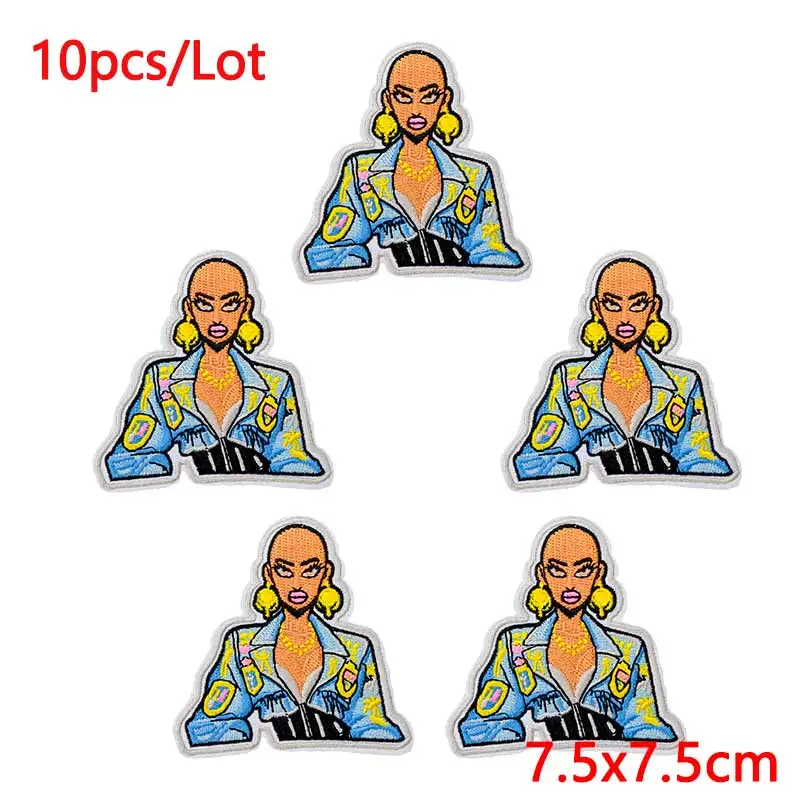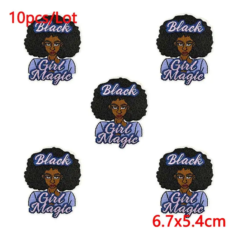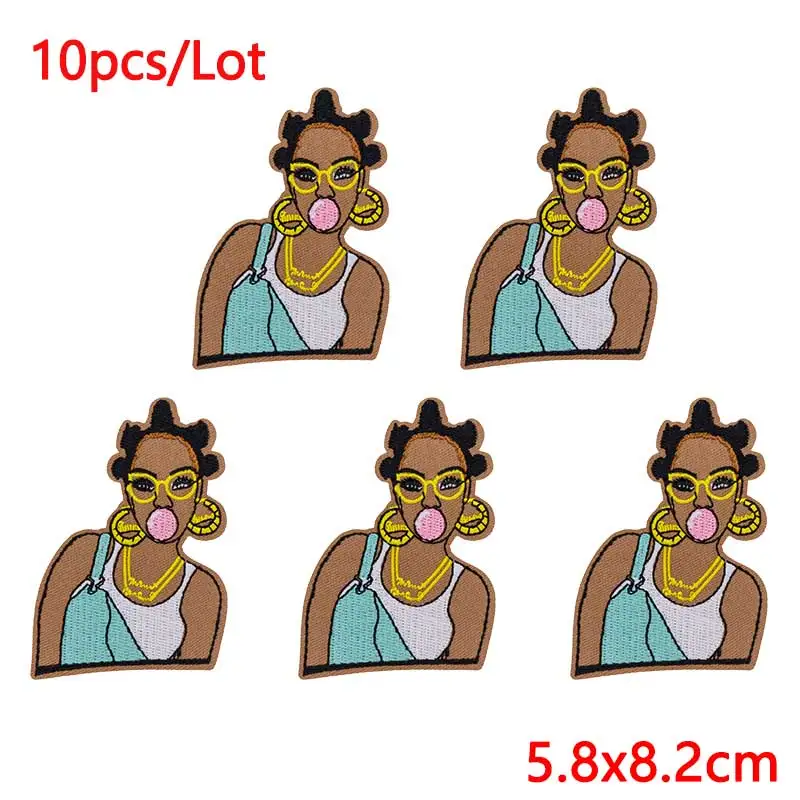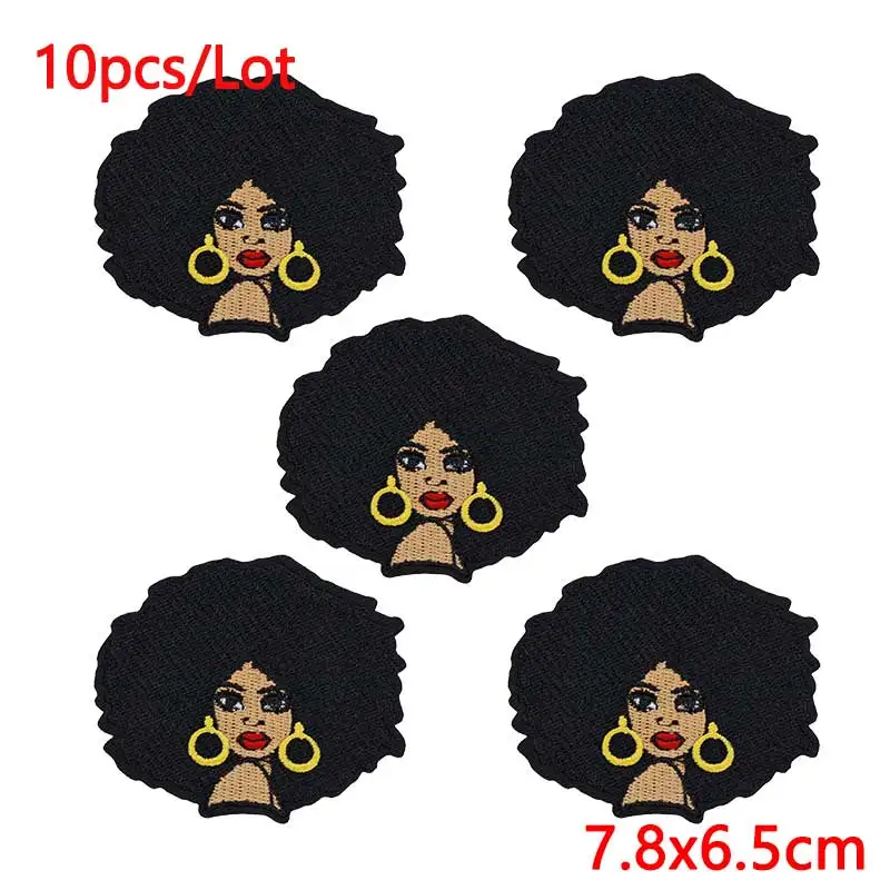 10 unids/lote parches bordados de niña negra para ropa: parches de hierro Punk Hip-Hop para chaqueta termoadhesivos para coser Rugby