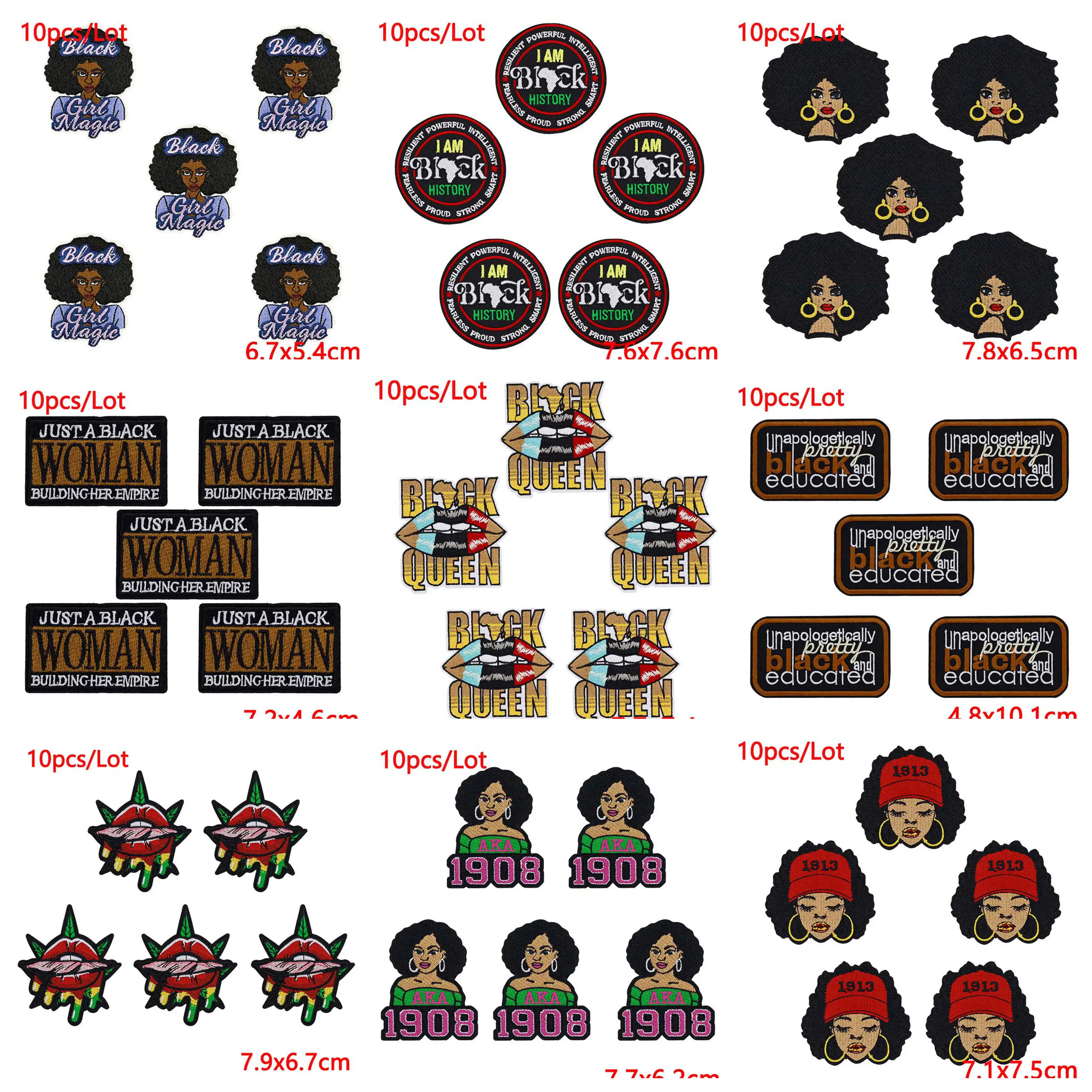 10 unids/lote parches bordados de niña negra para ropa: parches de hierro Punk Hip-Hop para chaqueta termoadhesivos para coser Rugby