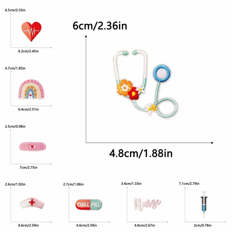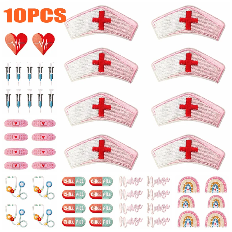 10 unids/lote, parches bordados de corazón de amor de dibujos animados para el día de enfermeras, parches para planchar DIY para ropa, sombreros DIY, insignias de costura uniformes