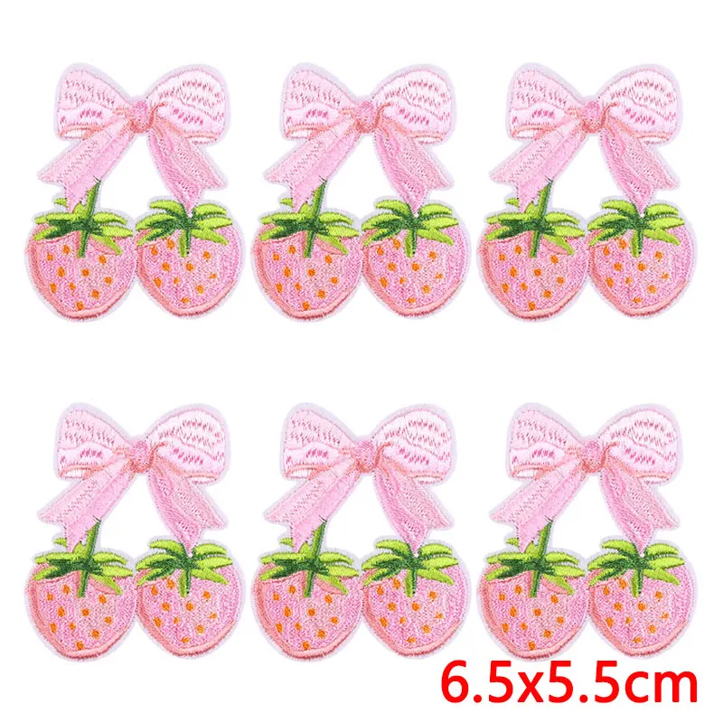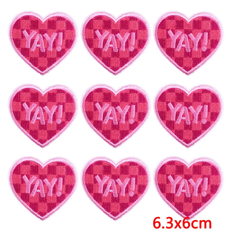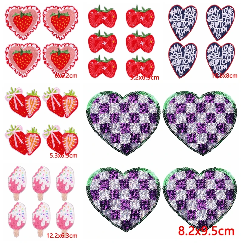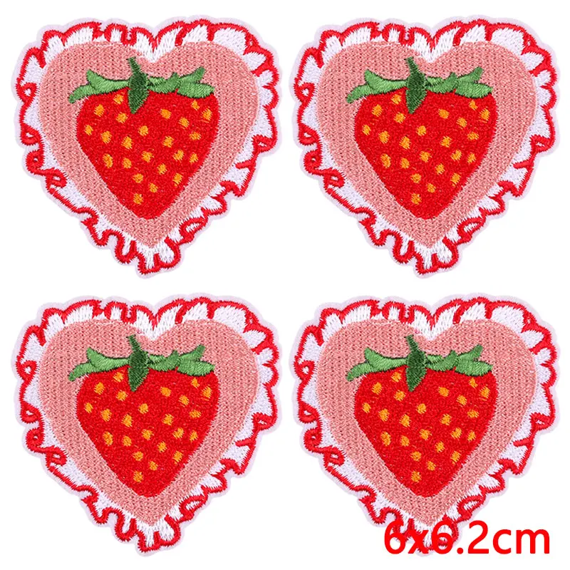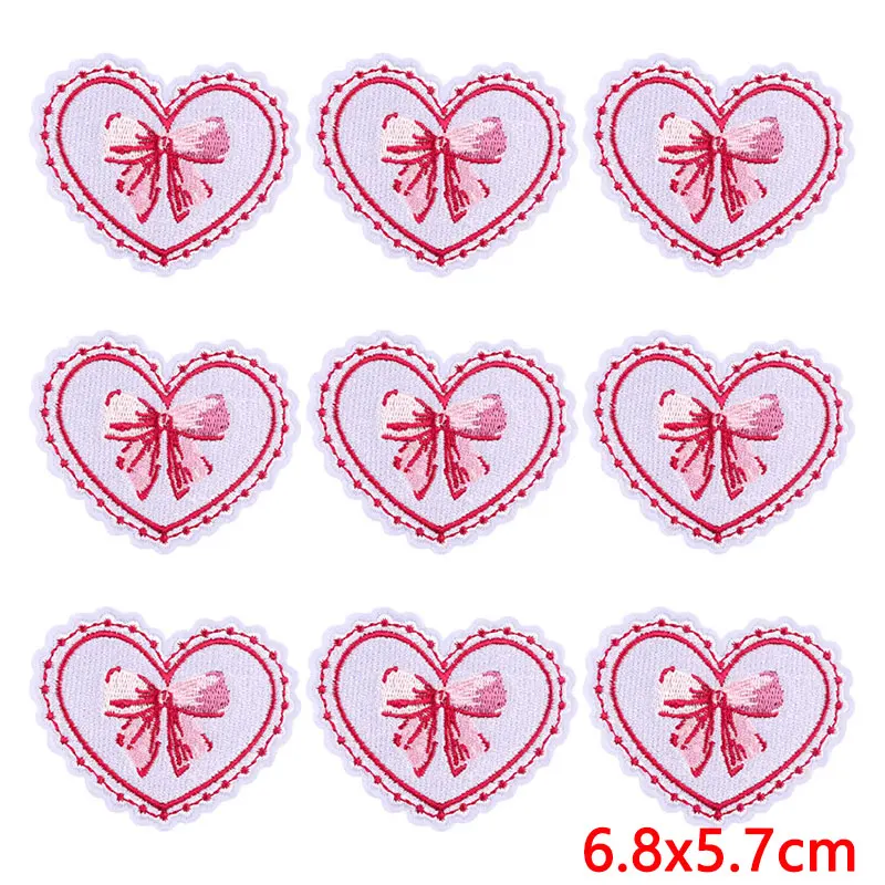 10 unids/lote de parches bordados de corazón de dibujos animados en ropa, parche bordado rosa para comida, parches para planchar, pegatinas de apliques de ropa