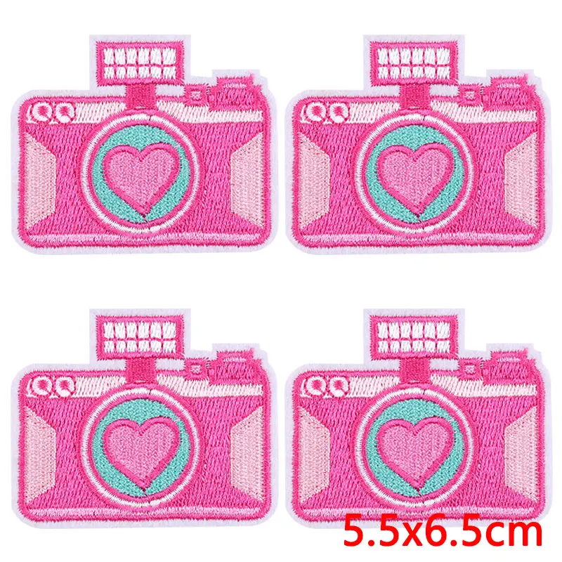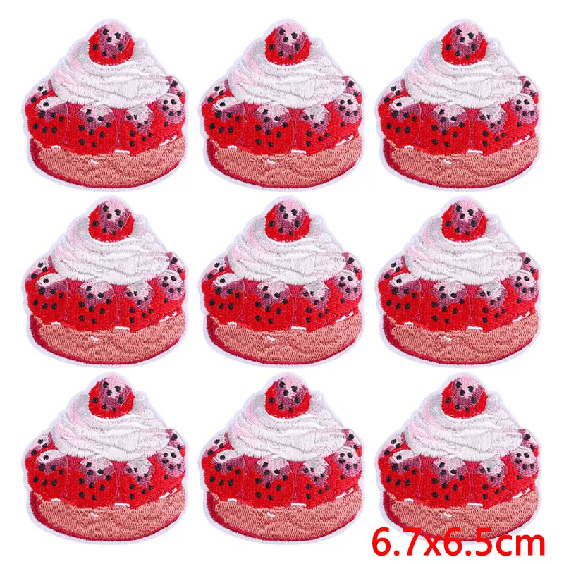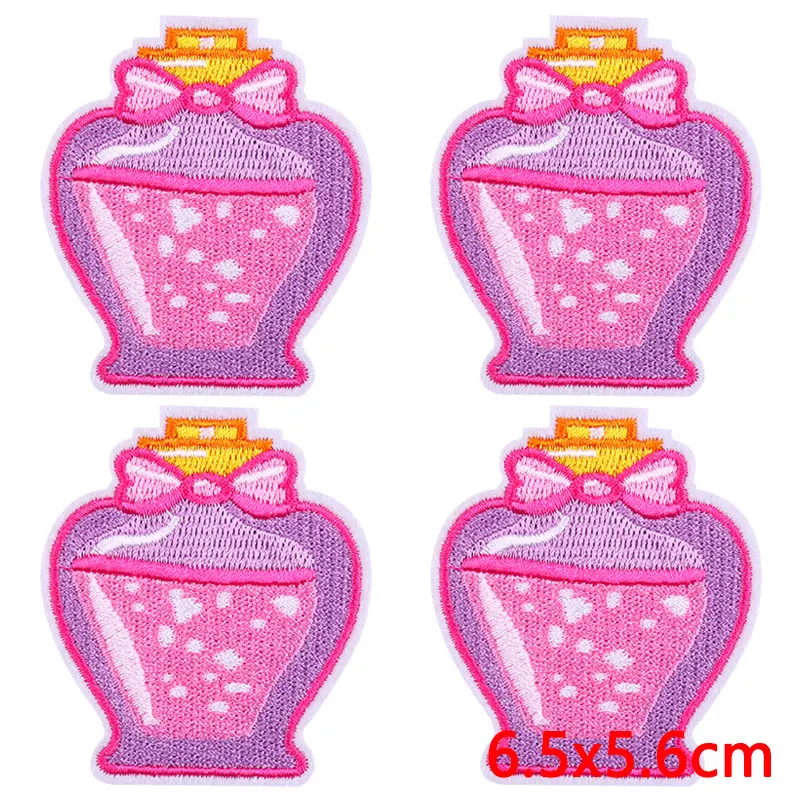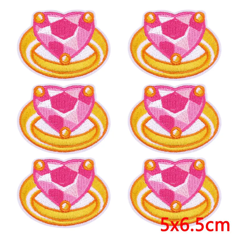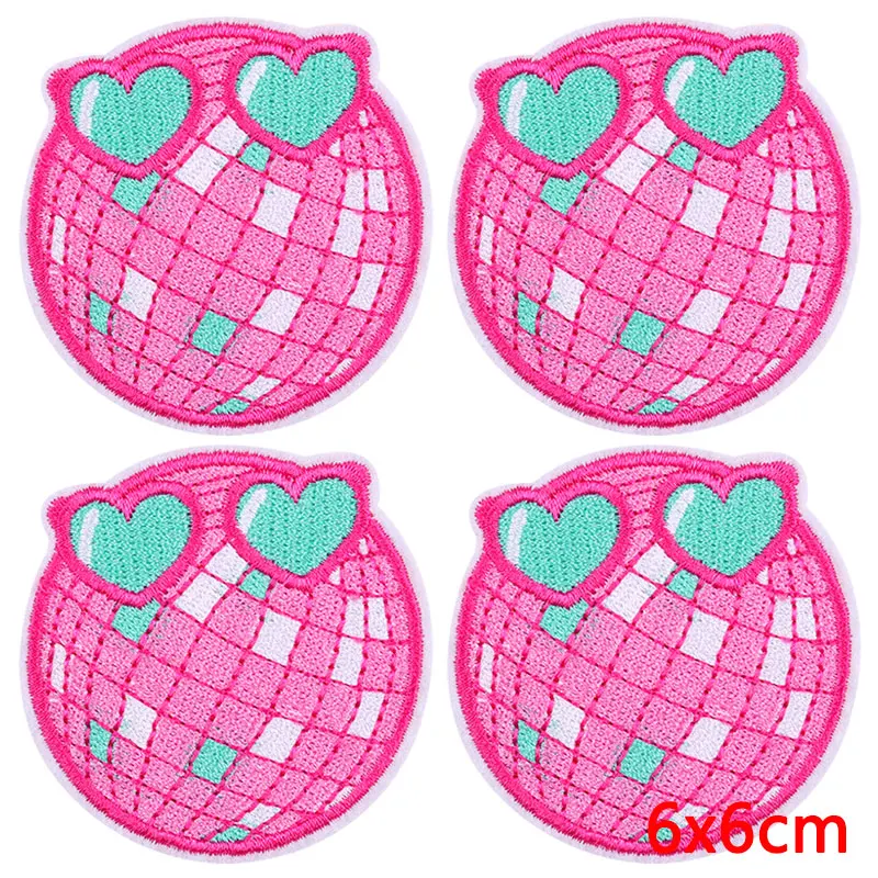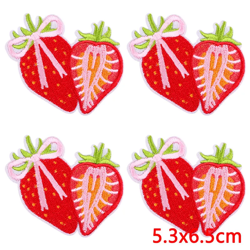 10 unids/lote de parches bordados de corazón de dibujos animados en ropa, parche bordado rosa para comida, parches para planchar, pegatinas de apliques de ropa