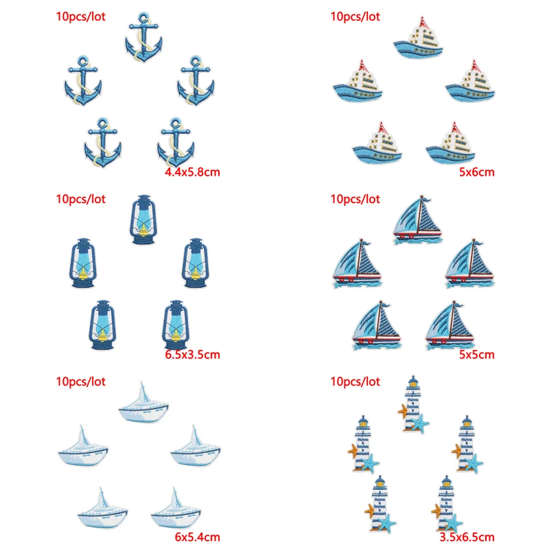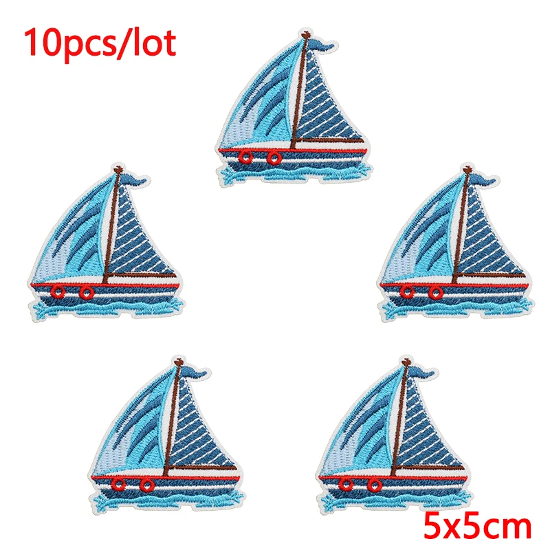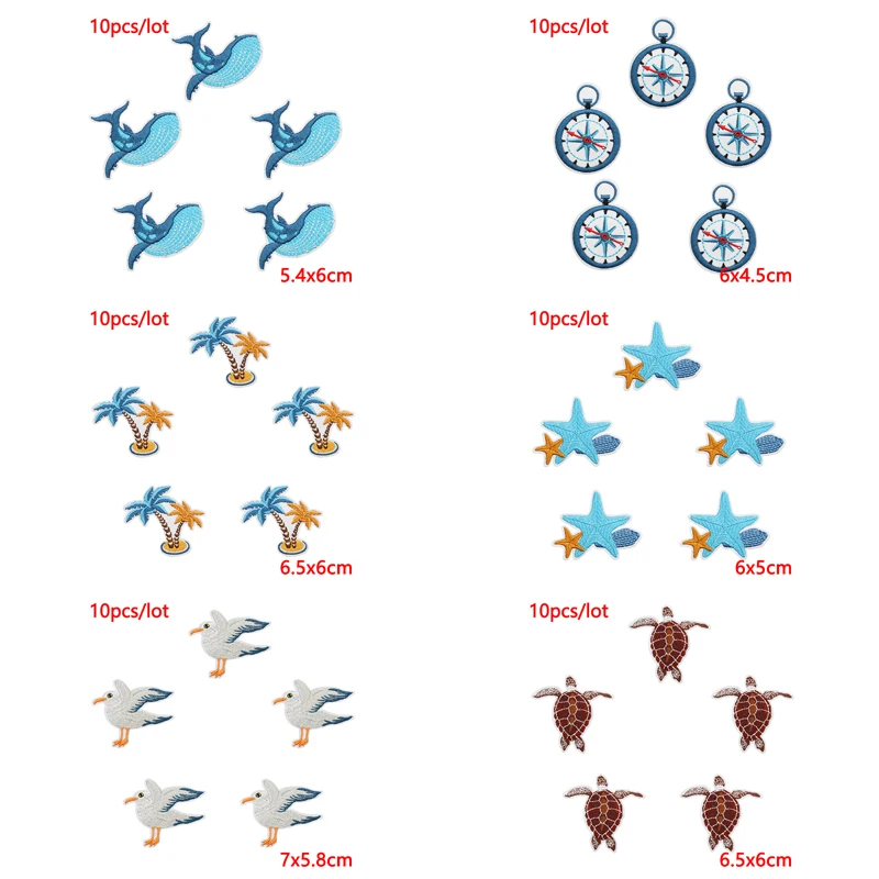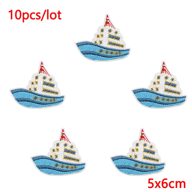10 unids/lote de parches bordados de crucero para barco para ropa: parches de hierro de ballena para decoración de apliques termoadhesivos