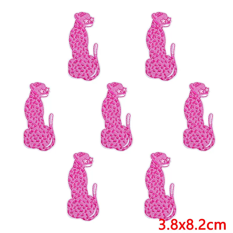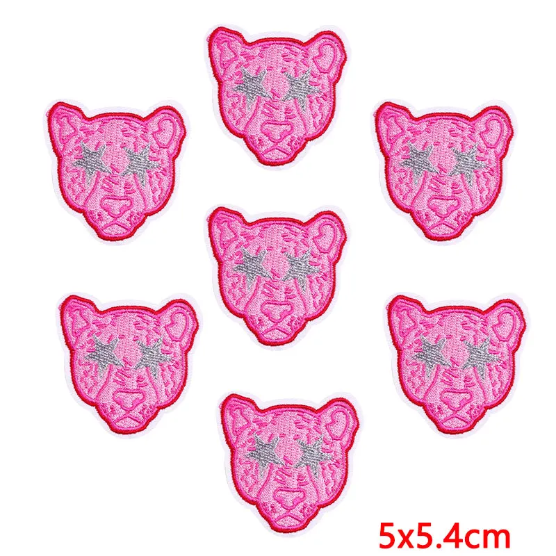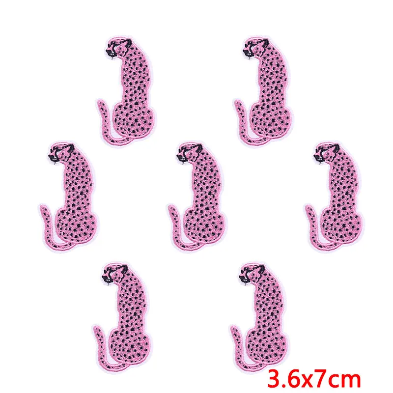 10 unids/lote de parches bordados de dibujos animados para ropa, parche de leopardo rosa, parches para planchar en ropa, sombrero, mochilas, pegatinas Diy