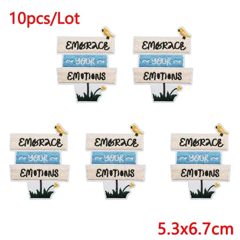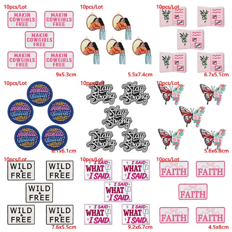 10 unids/lote de parches bordados con eslogan de letras para ropa: parches de hierro de dibujos animados para chaqueta de jugador decoración de logotipo termoadhesivo