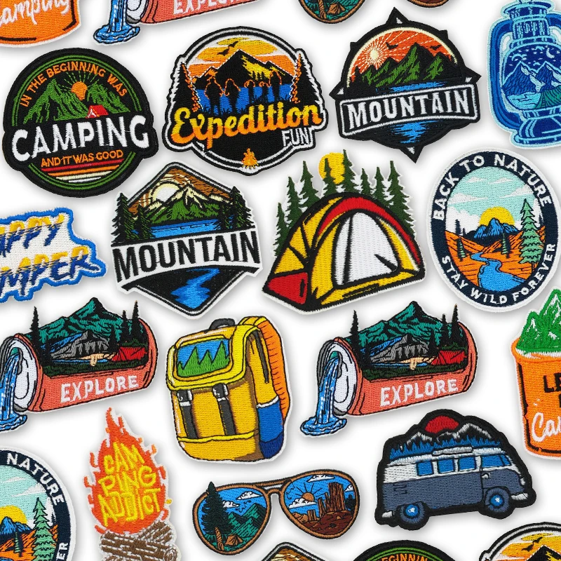 10 unids/lote parches bordados de expedición de montaña para acampar al aire libre parches para planchar para mochila sombrero pegatina insignias tácticas DIY