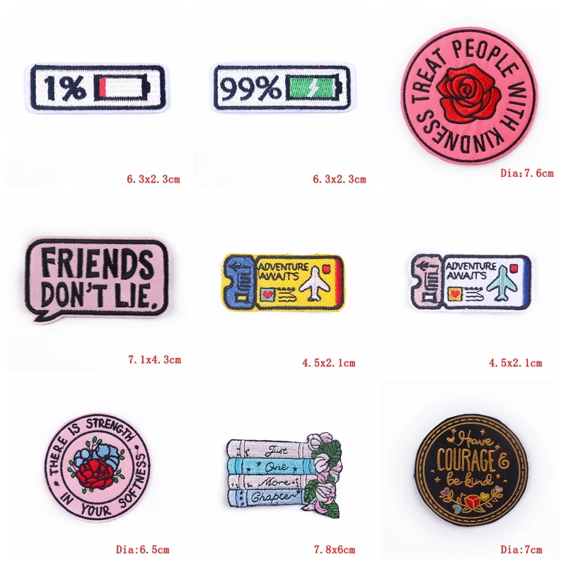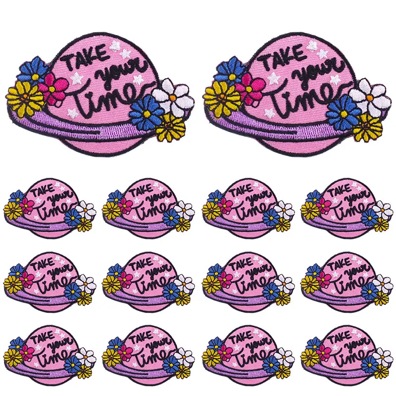 10 unids/lote de parches bordados de flores y letras de dibujos animados, parche de letras de idioma positivo, parches para planchar para ropa, insignias para coser DIY
