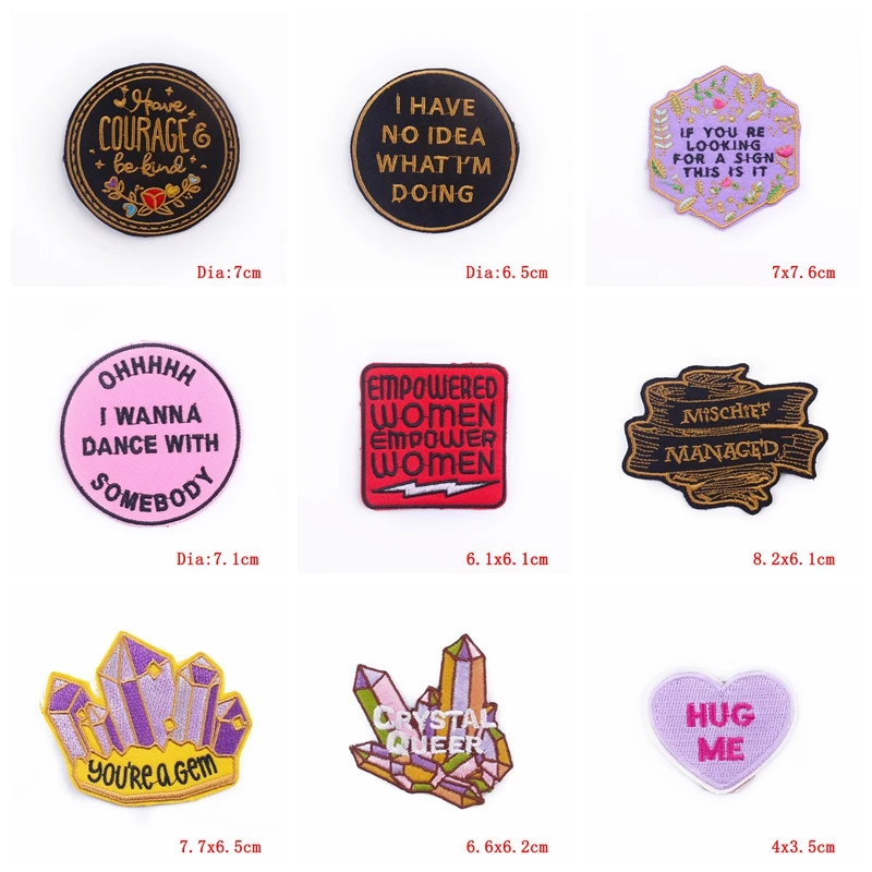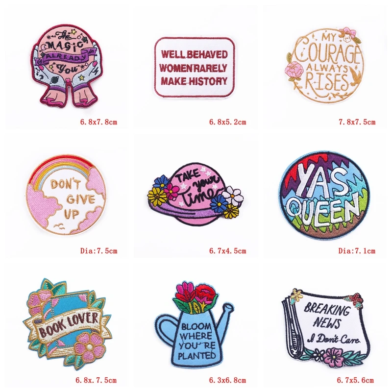 10 unids/lote, parches bordados de flores con letras de dibujos animados, parche de letras de idioma positivo, parches de hierro para ropa, insignias de costura DIY
