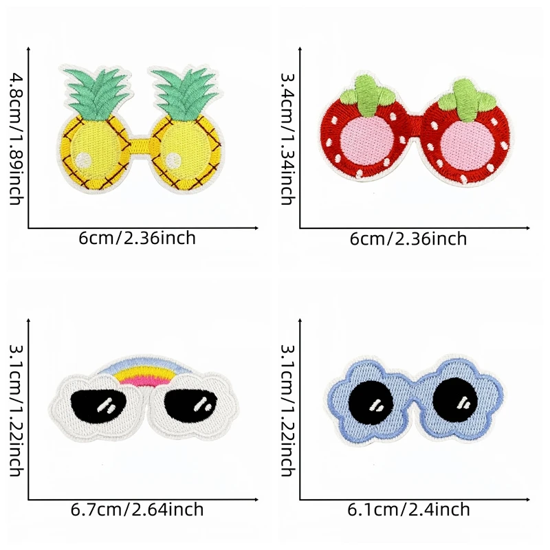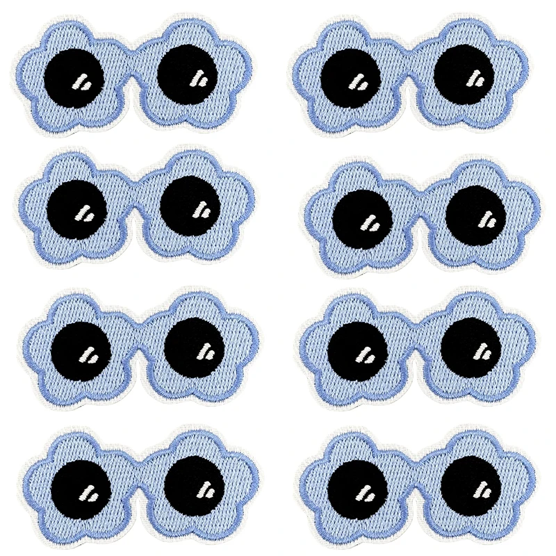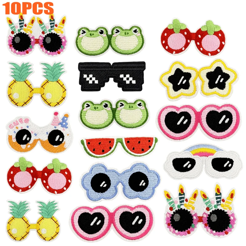 10 unids/lote de parches bordados para gafas de dibujos animados para niños, parches para planchar DIY para sombreros, chaquetas, zapatos, apliques bordados
