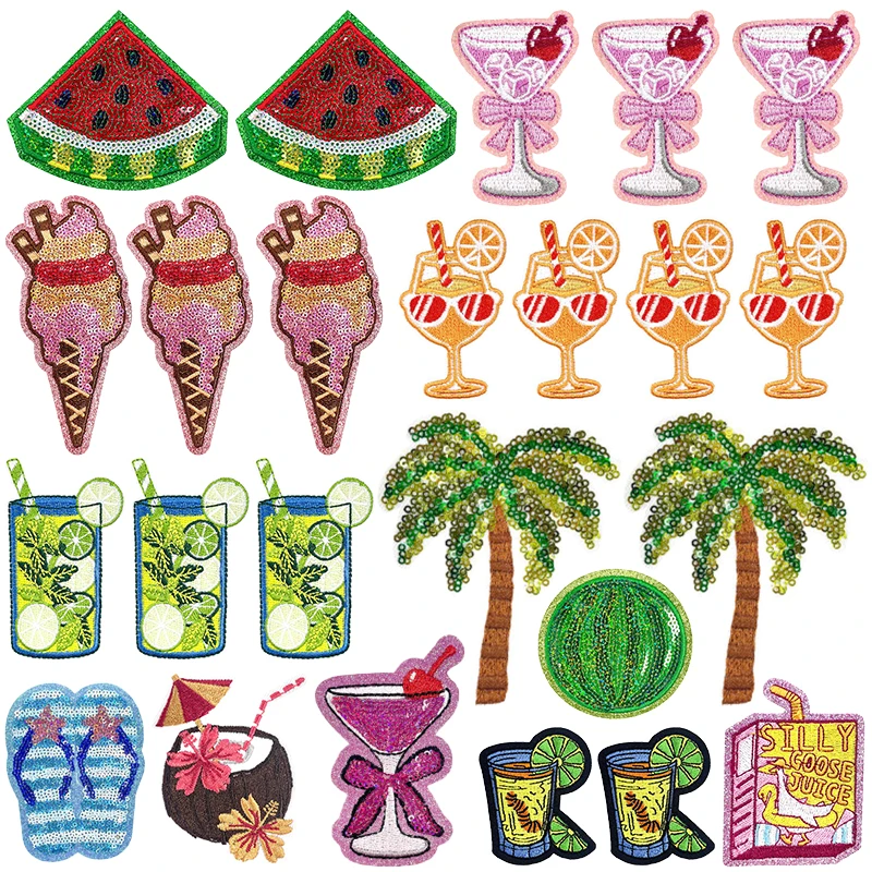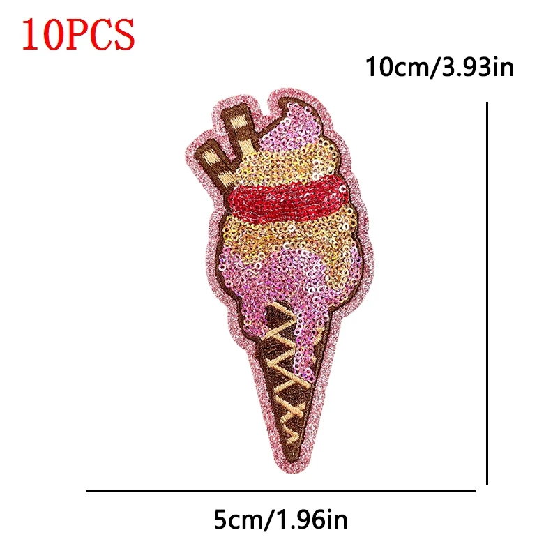 10 unids/lote, parches bordados de lentejuelas de cocoteros para ropa, parche para planchar para ropa, helado, parche para coser, apliques DIY
