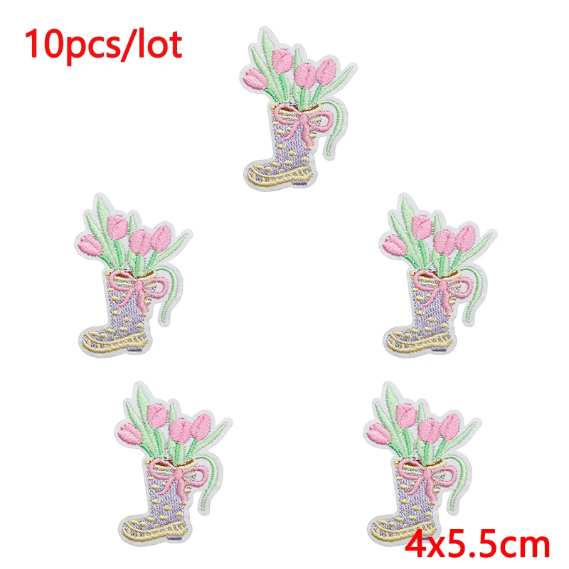 10 unids/lote de parches bordados con letras de dibujos animados para ropa: parches de flores para planchar para sudadera con capucha, insignia adhesiva termoadhesiva
