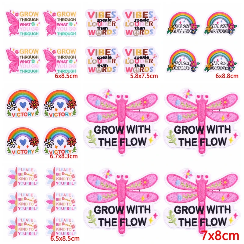 10 unids/lote de parches bordados con letras de flores en la ropa, parche bordado de dibujos animados de corazón, parches de hierro para ropa, apliques Diy