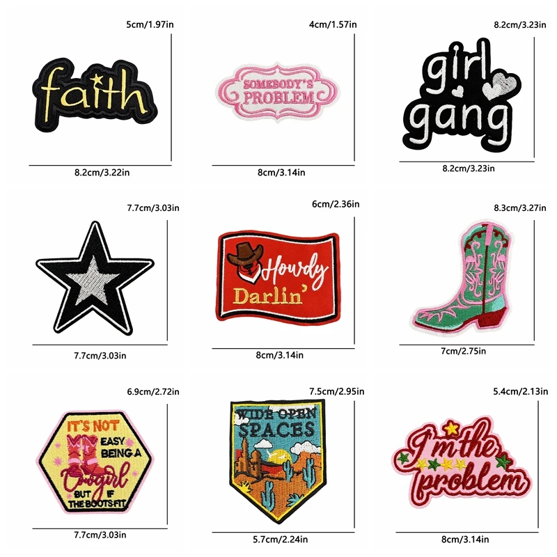 10 unids/lote parches bordados con letras en inglés Retro decoración DIY letras coloridas lema planchar sobre parches para chaquetas de ropa