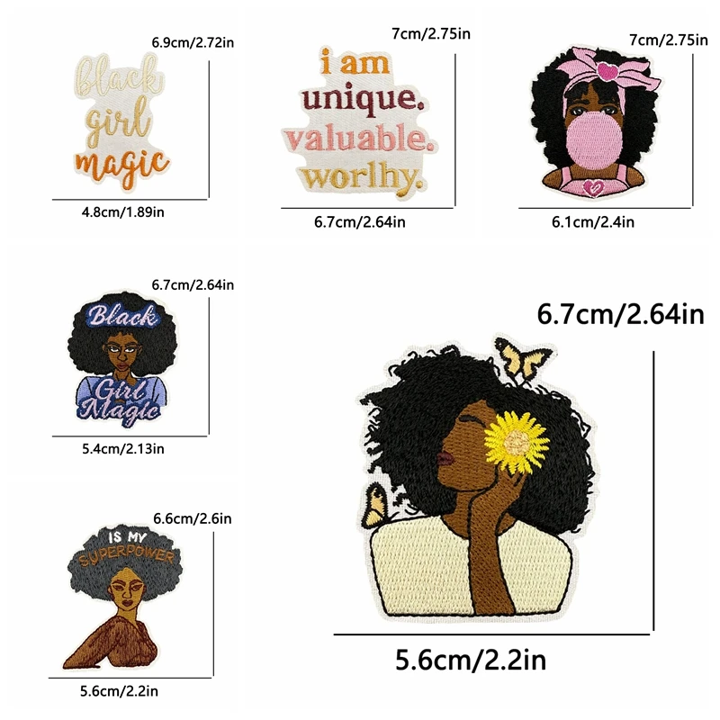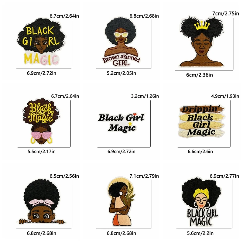 10 unids/lote, parches bordados mágicos de chica negra a la moda, parche con eslogan de letras de dibujos animados, parches para planchar para ropa, chaquetas DIY