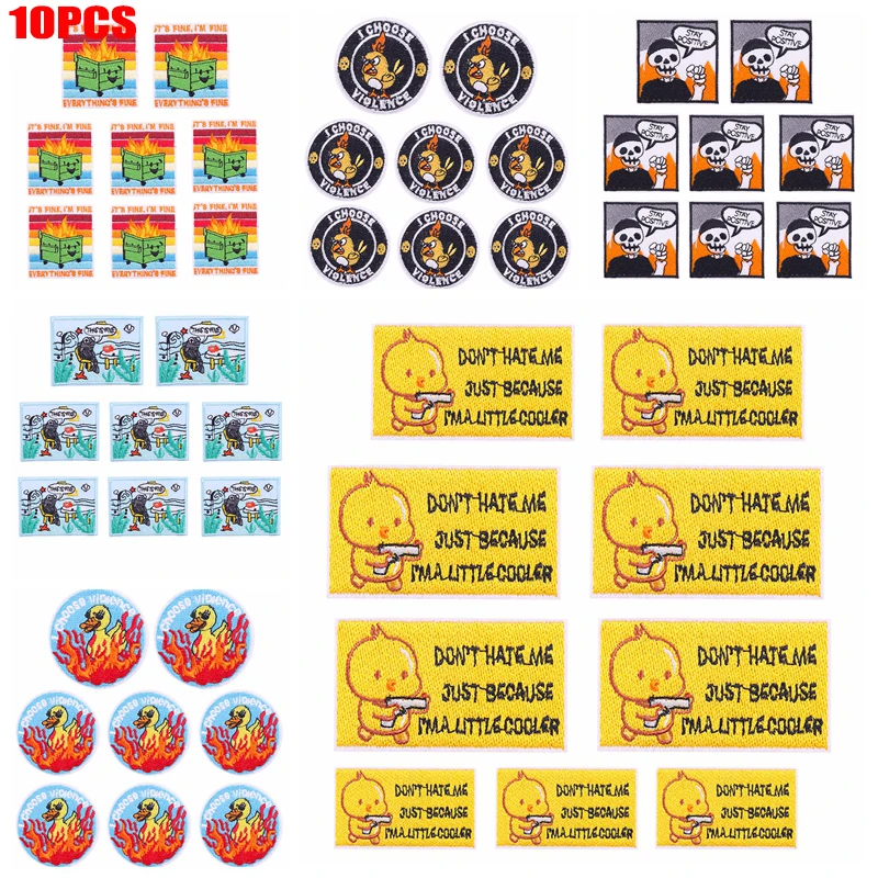 10 unids/lote parches bordados de pato divertido DIY parche de dibujos animados/animales parches para planchar para ropa parches termoadhesivos insignias