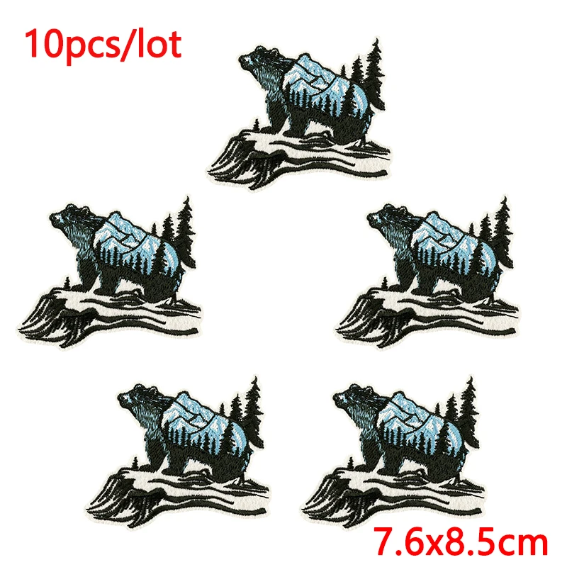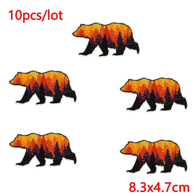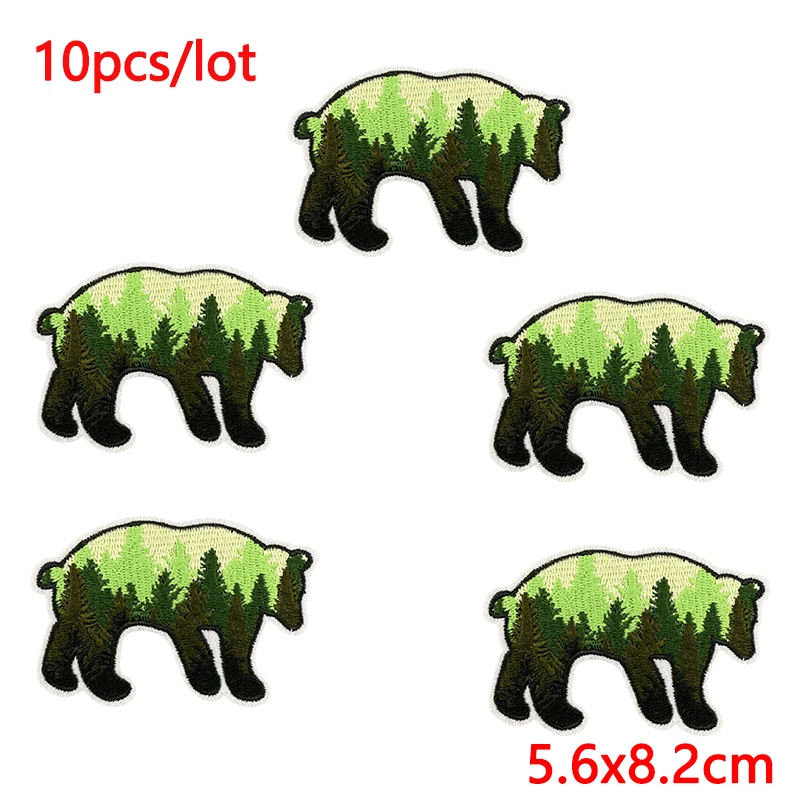 10 unids/lote de parches bordados al aire libre para la naturaleza para ropa: parches termoadhesivos de oso para ropa, logotipo de pegatinas termoadhesivas