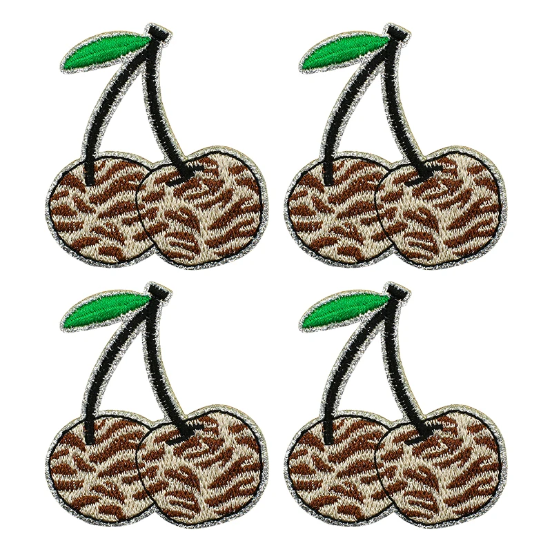 10 unids/lote de parches bordados de la serie con estampado de leopardo de dibujos animados, parches para planchar para ropa, parche para labios de cereza y mariposa, chaqueta DIY
