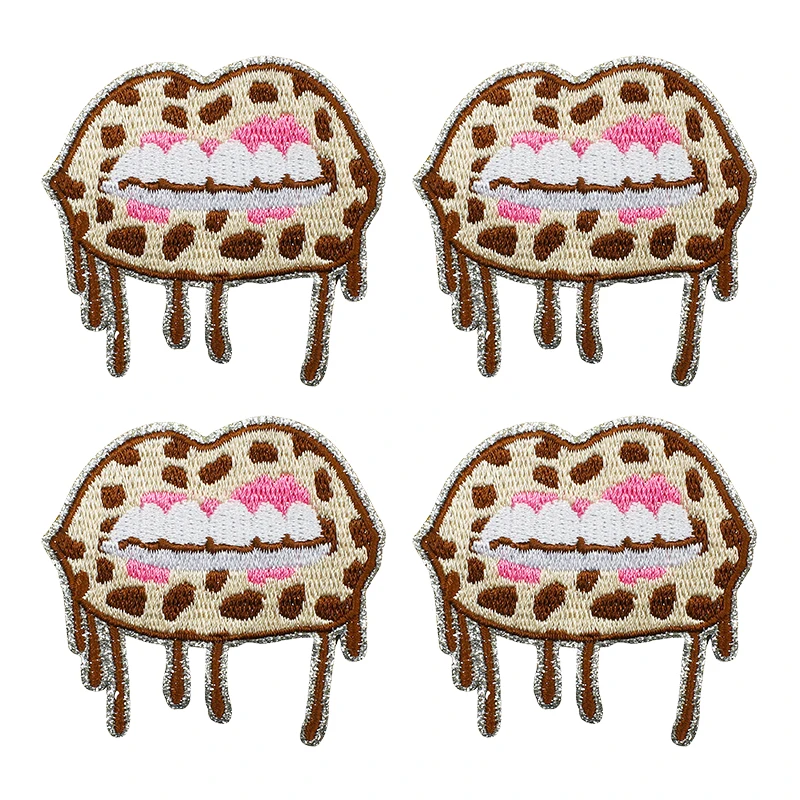 10 unids/lote de parches bordados de la serie con estampado de leopardo de dibujos animados para ropa, chaqueta con parche de labios de cereza y mariposa DIY