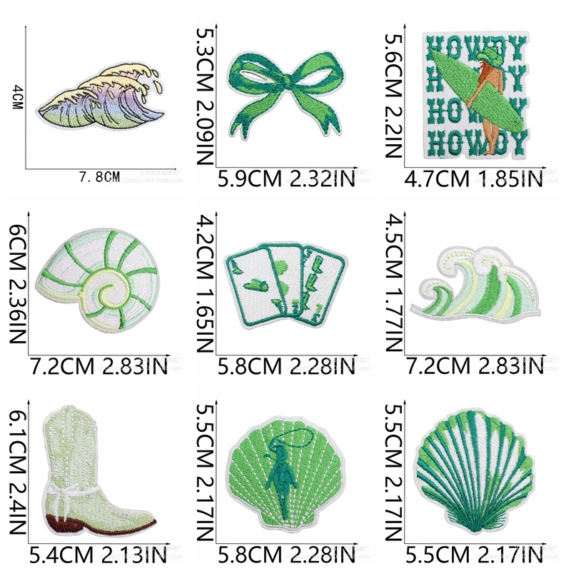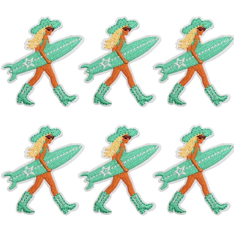 10 unids/lote, parches bordados con tema verde, vaqueros occidentales/verano, parche para chica surf, parches para planchar, sombreros DIY, chaquetas, insignias de costura