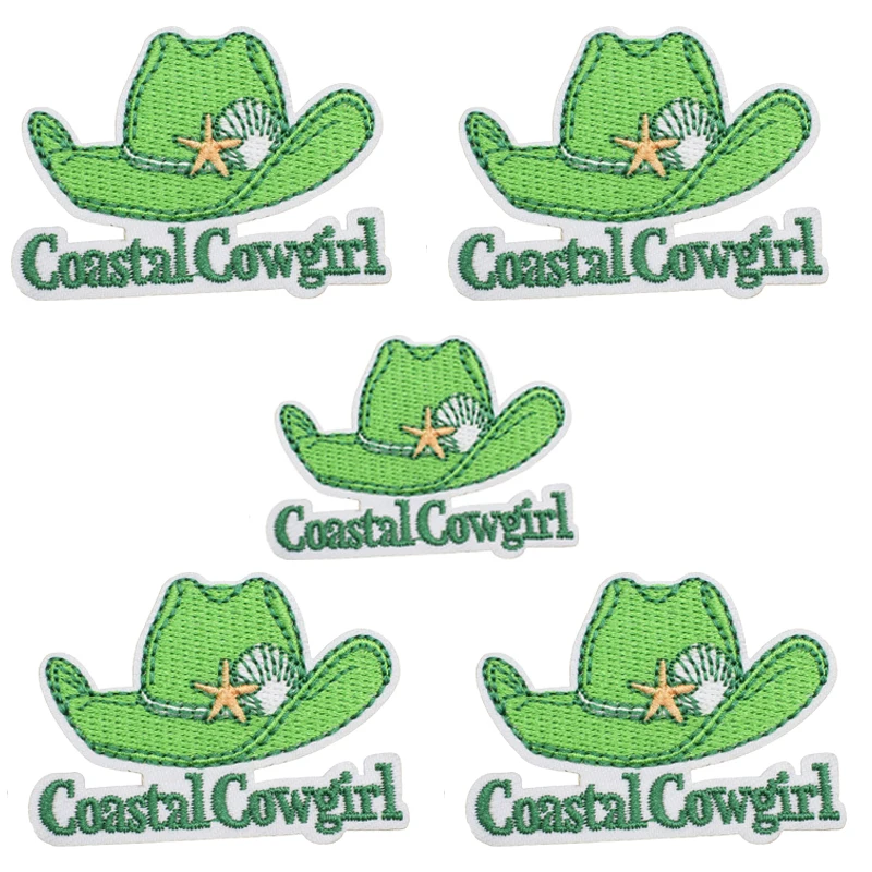 10 unids/lote parches bordados con tema verde vaqueros occidentales/papa para surfear de verano para niña parches para planchar sombreros DIY chaquetas insignias para coser