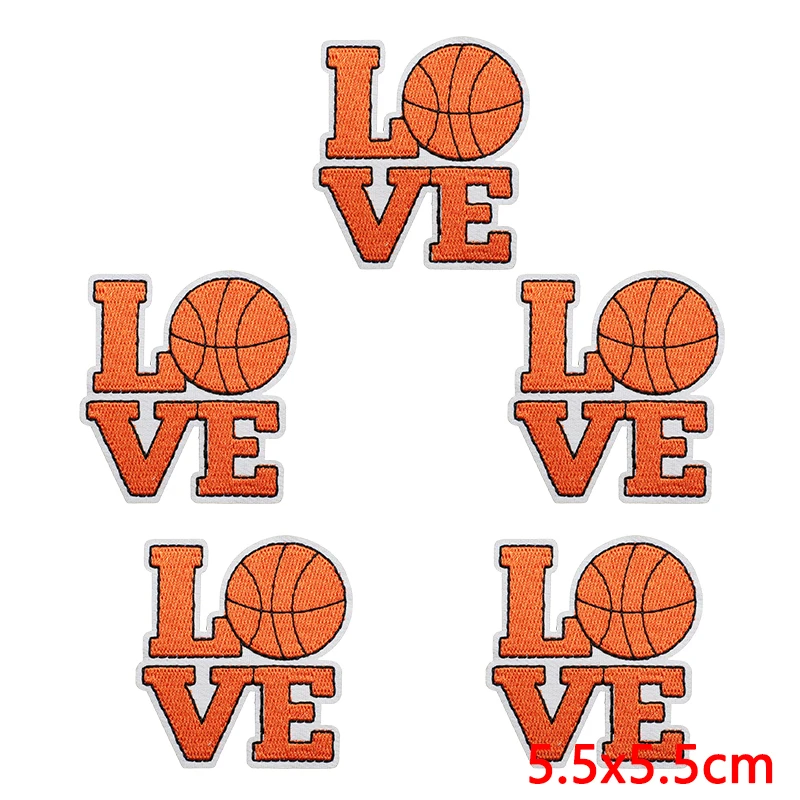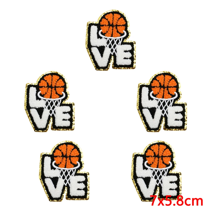 10 unids/lote de parches de chenilla de baloncesto de amor, parche bordado en camiseta, parches de hierro para ropa, insignias DIY para coser