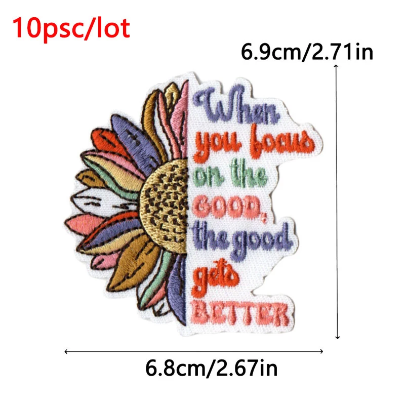 10 unids/lote parches de letras de dibujos animados para ropa-parches de bordado con plancha de flores