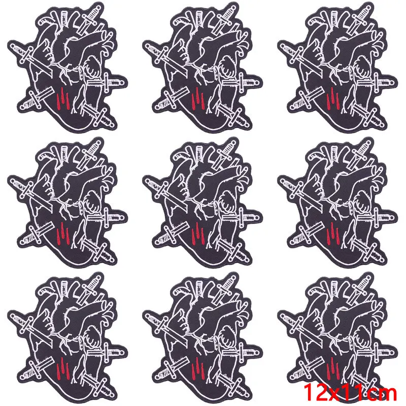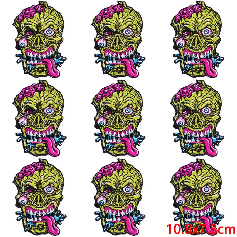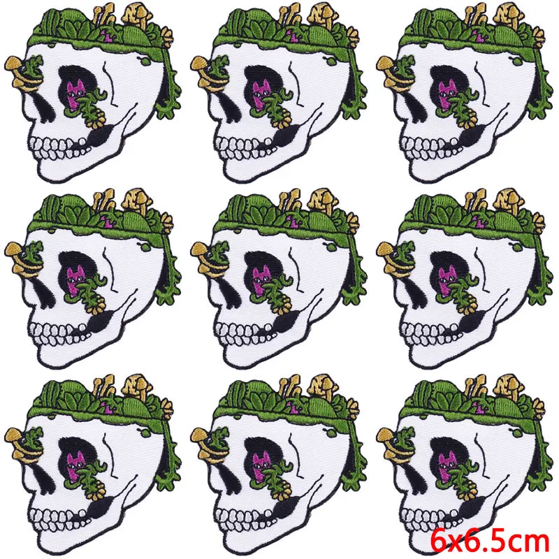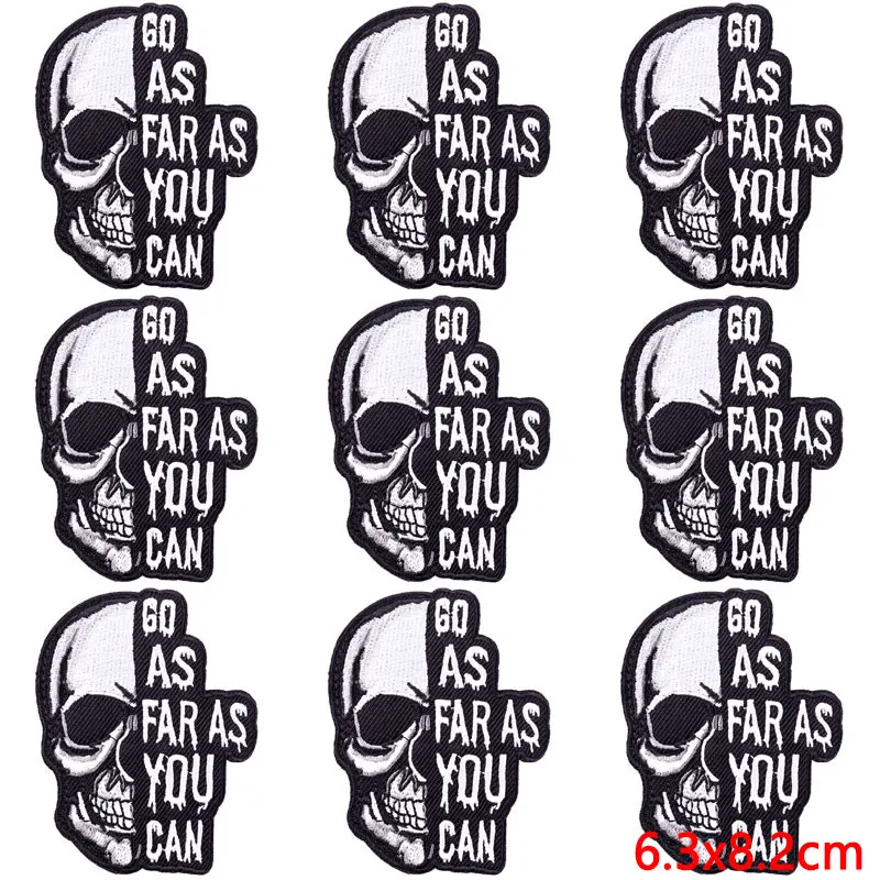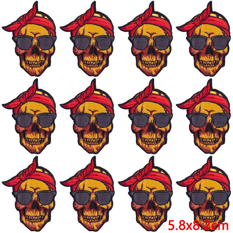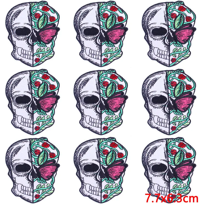 10 unids/lote Hip Hop Skull Iron On parches para ropa parche Punk para ropa parches bordados termoadhesivos en insignias de ropa