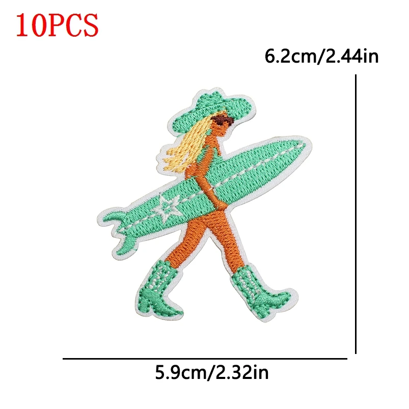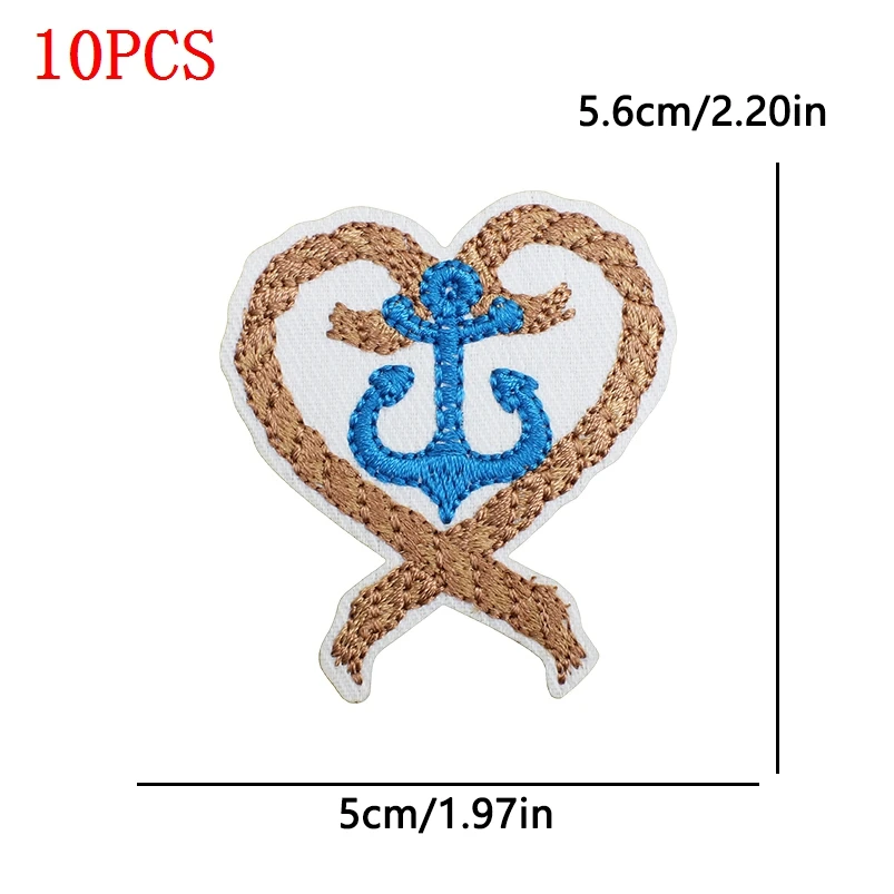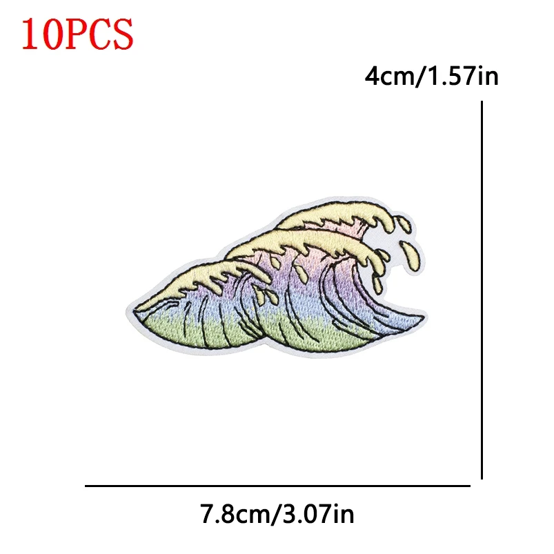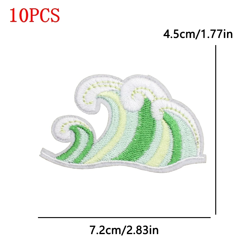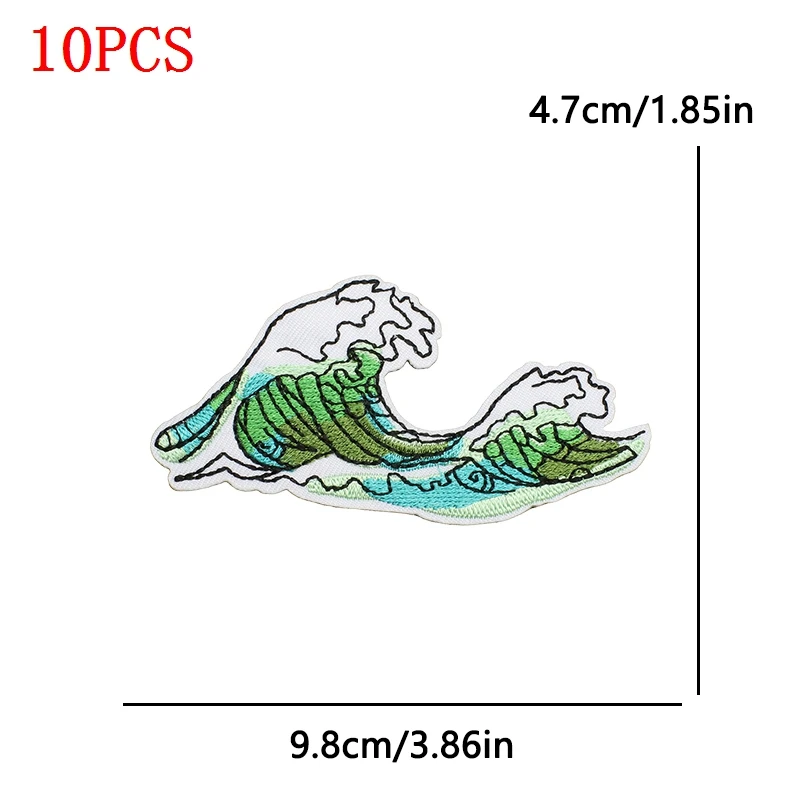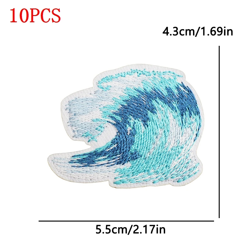 10 unids/lote Parches de planchar de vaquera costera para ropa Parches bordados con ondas de mar apliques de decoración personalizados para coser