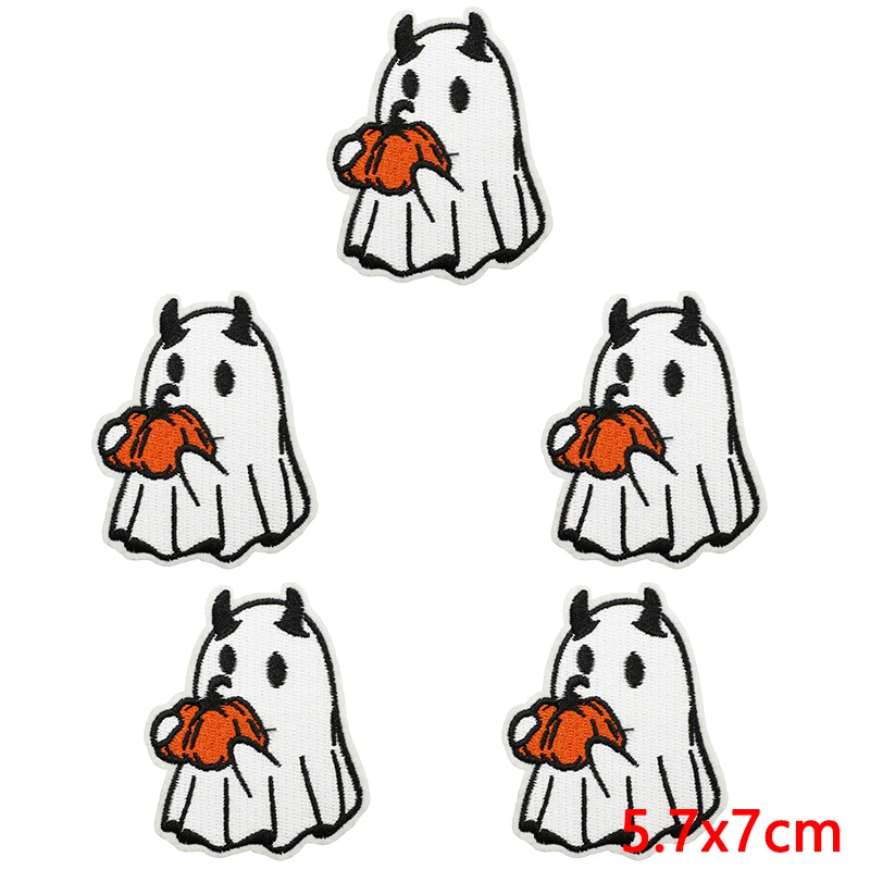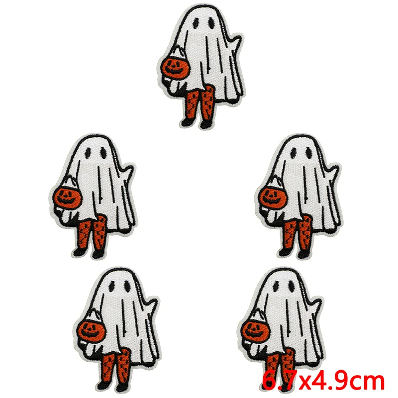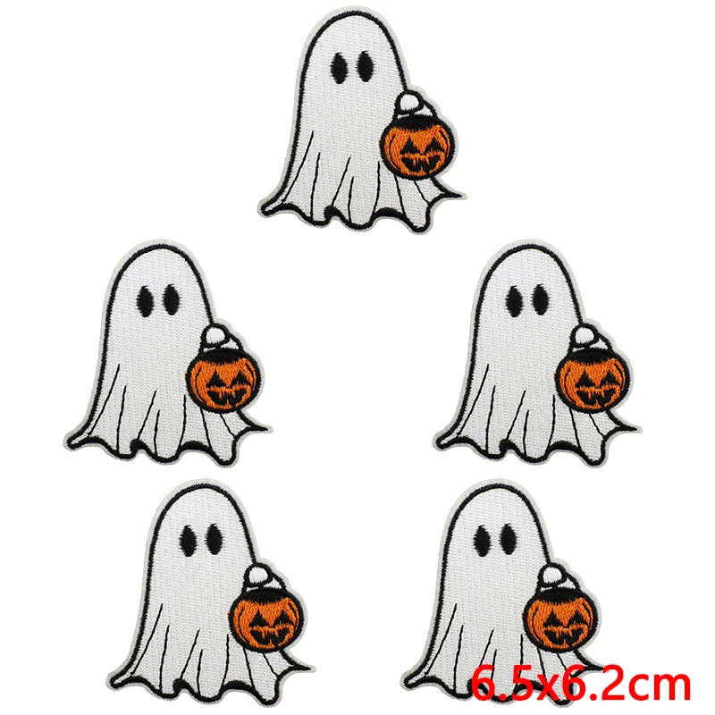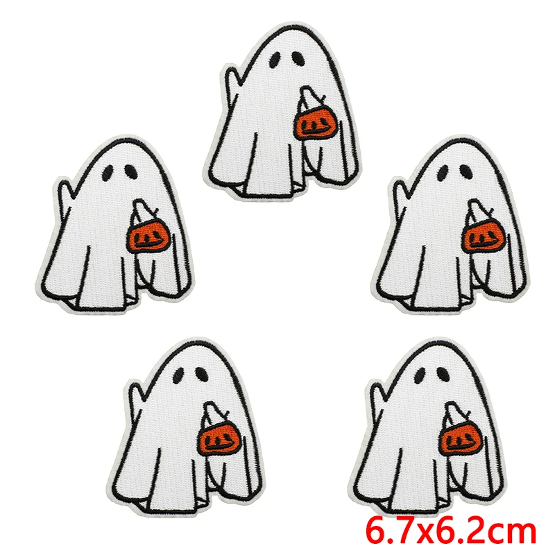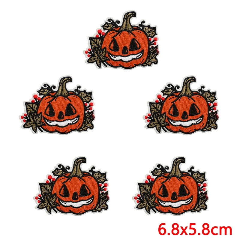 10 unids/lote de parches termoadhesivos con emblema de calabaza de Halloween para ropa, parches bordados para coser fantasma