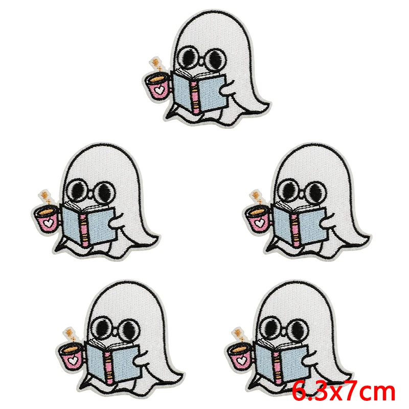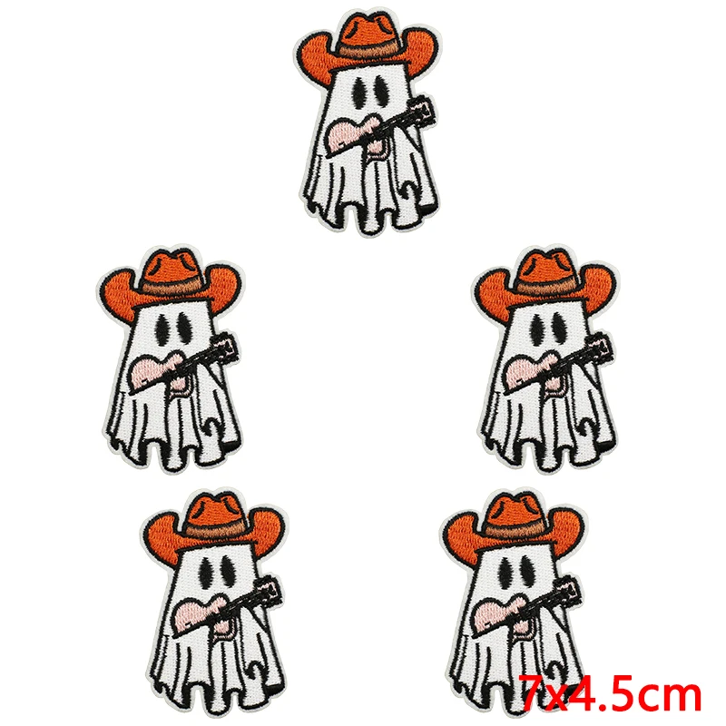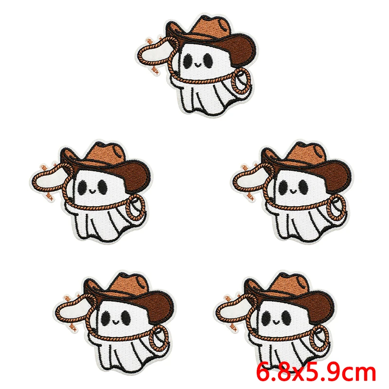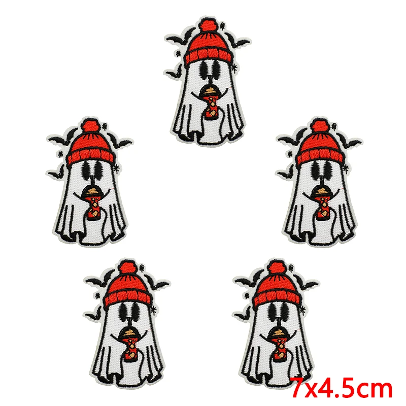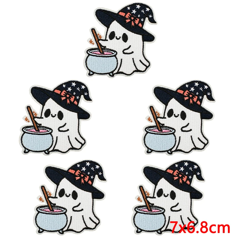 10 unids/lote de parches termoadhesivos con emblema de calabaza de Halloween para ropa, parches bordados para coser fantasma