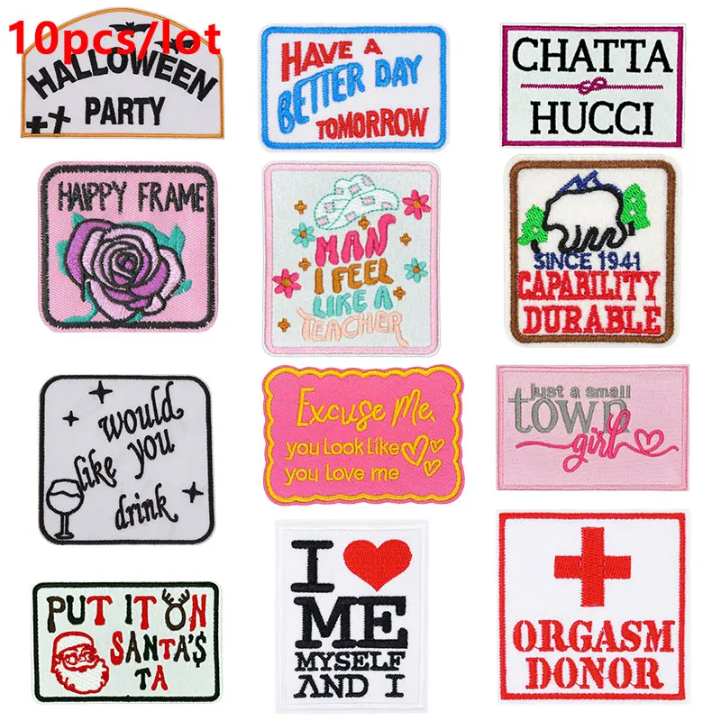 10 unids/lote de parches para planchar con letras para ropa-2025, parches bordados de dibujos animados para ropa