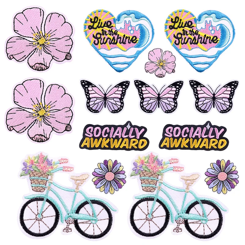 10 unids/lote de parches termoadhesivos para planchar con flores de dibujos animados para ropa, parches bordados con letras positivas Diy