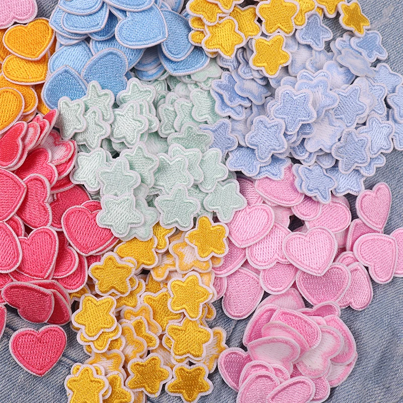 10 unids/lote pequeño corazón de amor/estrella parche bordado hierro en parches para ropa parches termoadhesivos sombreros Jeans decorar DIY
