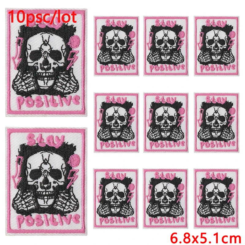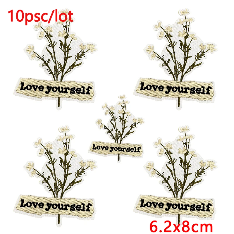 10 unids/lote parche de flores/letras Punk, parches de hierro para ropa, parches bordados de Hip-Hop en ropa, pegatinas de apliques de plantas