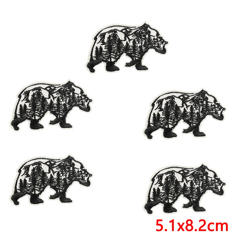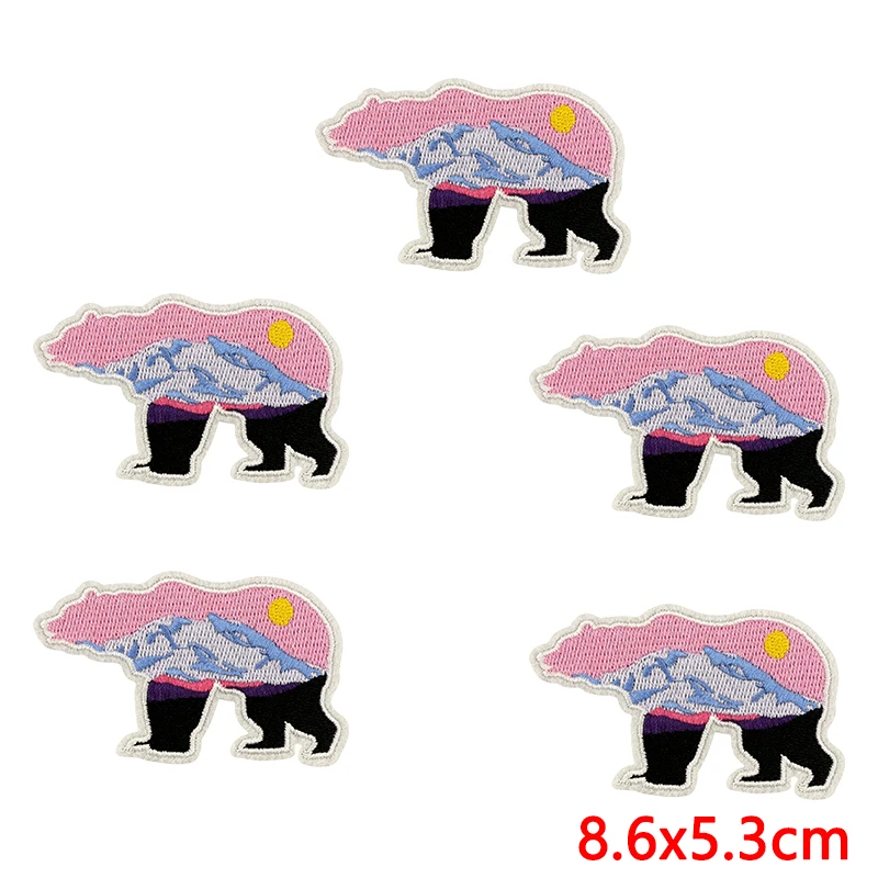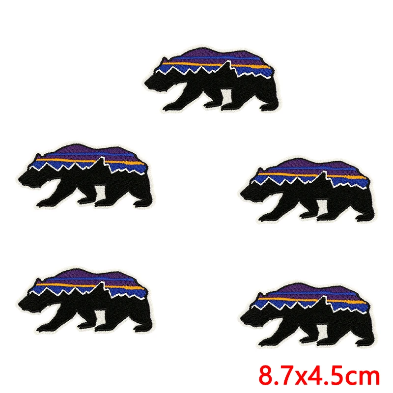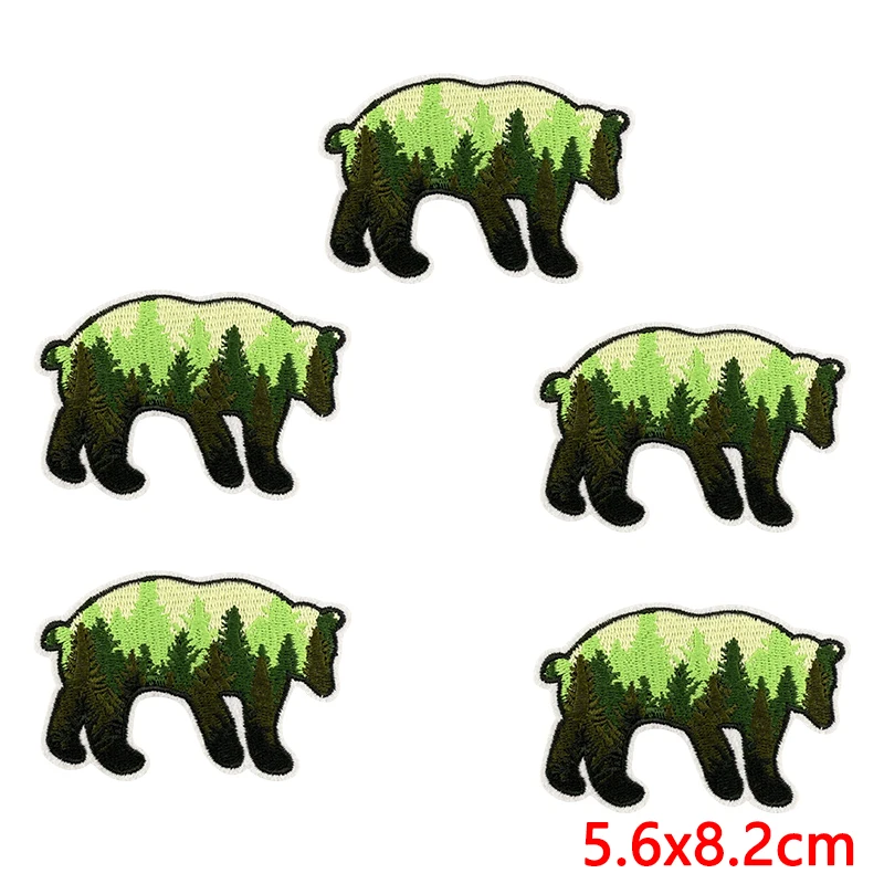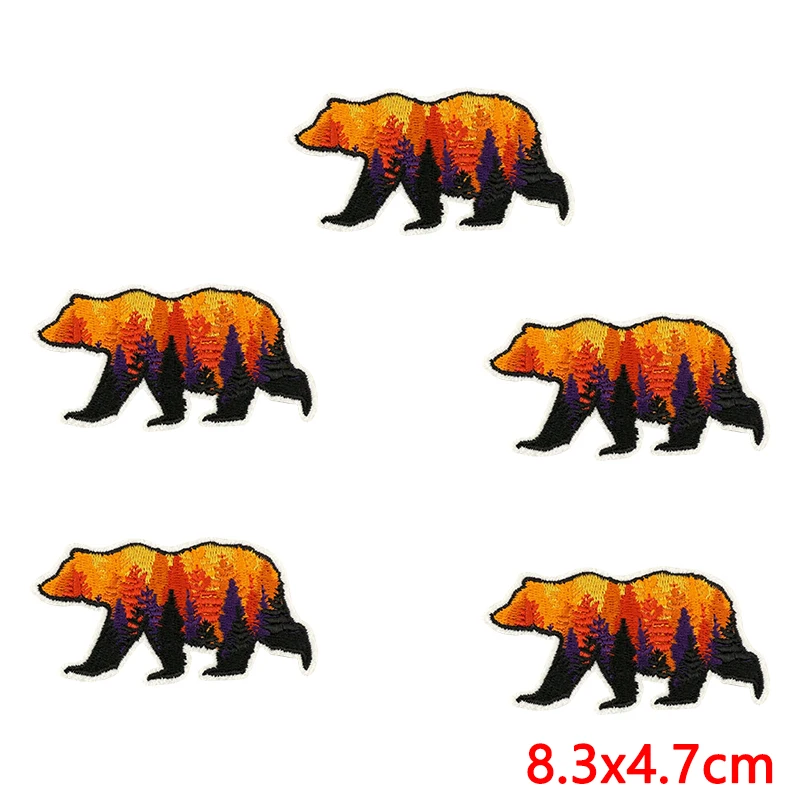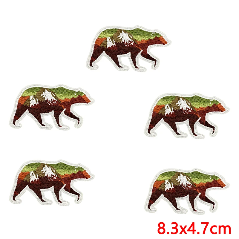 10 unids/lote escénico silueta de oso parches para planchar para ropa parches termoadhesivos en sombrero parche bordado al aire libre insignias con logotipo
