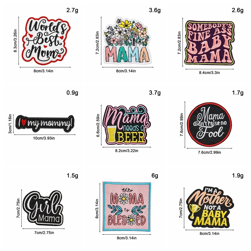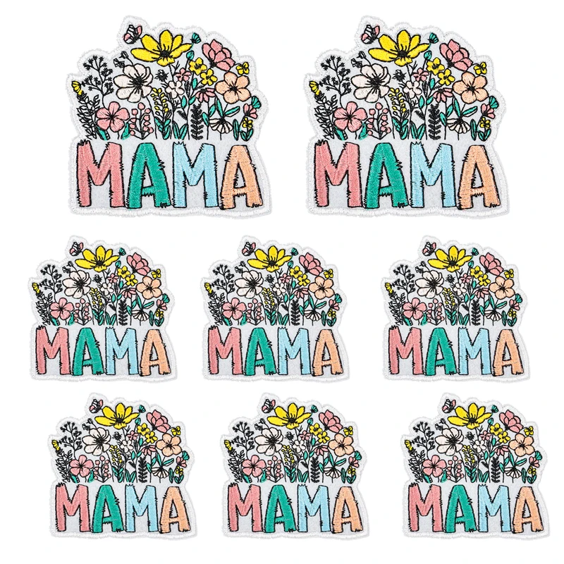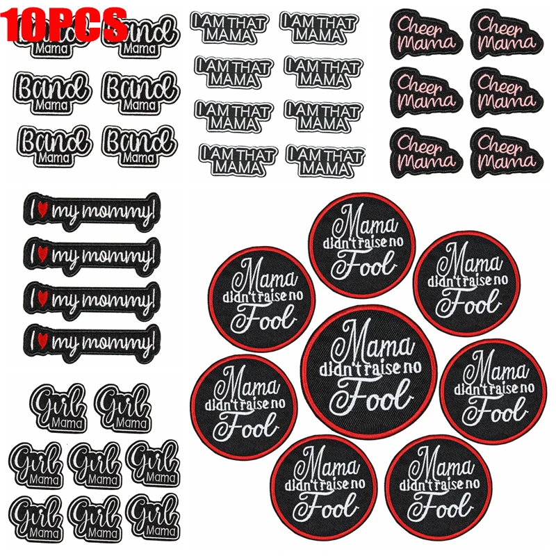 10 unids/lote sombreros chaquetas mochila parches bordados DIY dibujos animados/Mama parche con letras en inglés planchar en parches para pegatinas de ropa