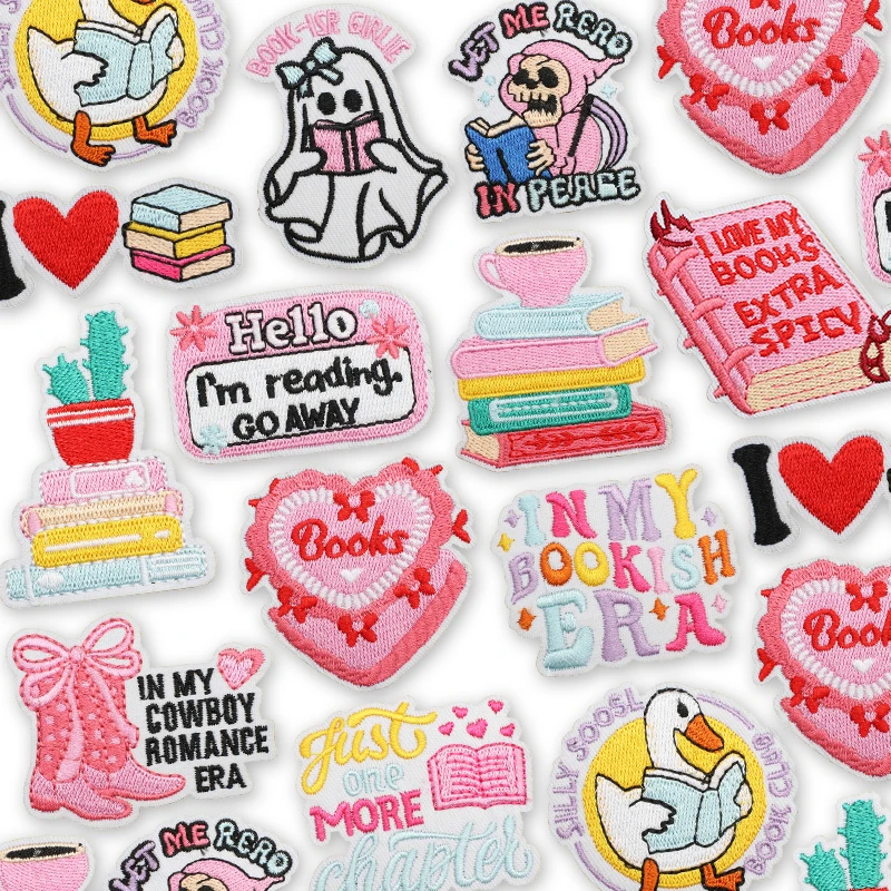 10 unids/lote, venta al por mayor, libro de amor, parches para planchar para ropa, parche termoadhesivo en lector de sombreros, parches bordados, apliques de logotipo