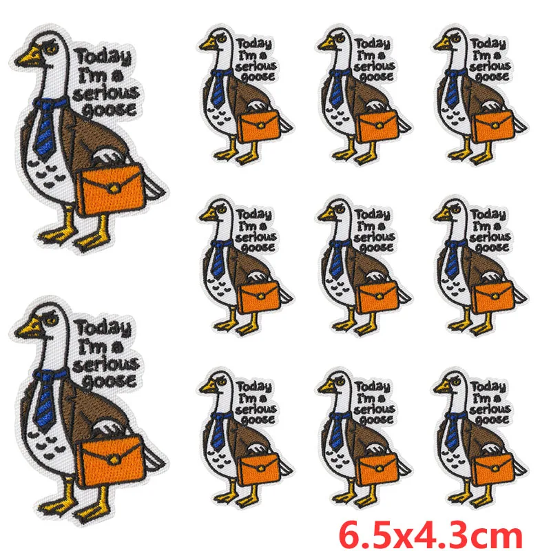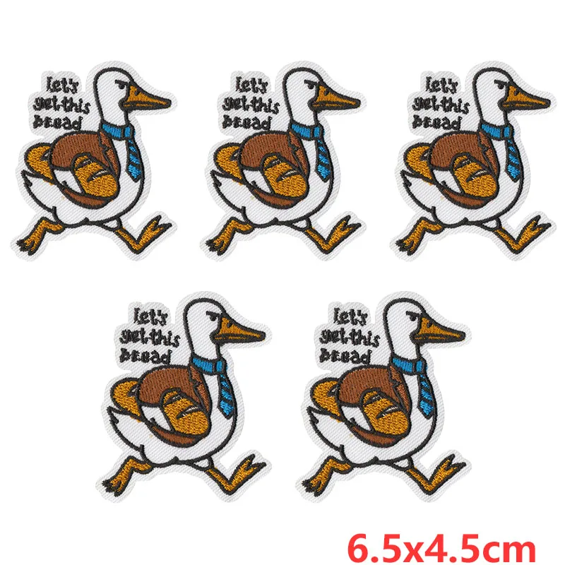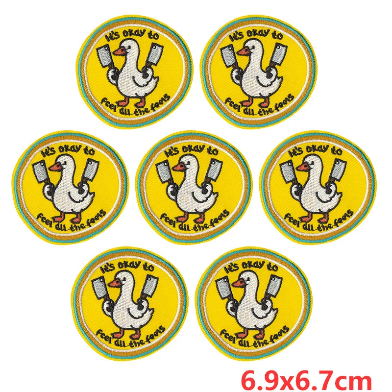 10 unids/lote, venta al por mayor, apliques de animales redondos, parches de hierro en la ropa, parches bordados de pato divertidos para ropa, pegatinas DIY
