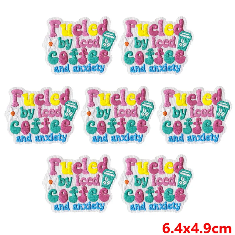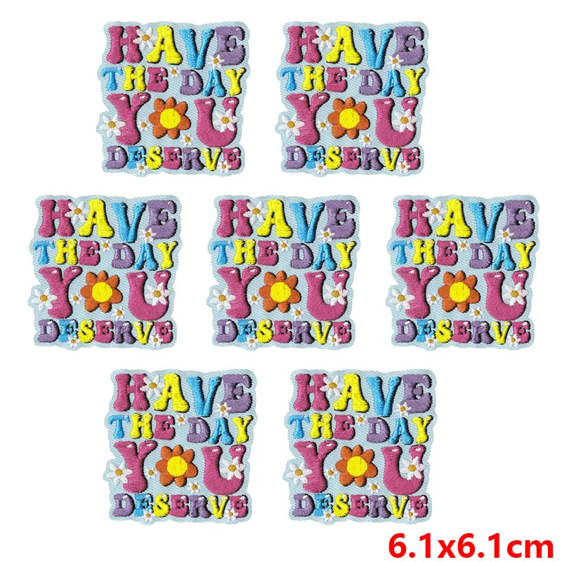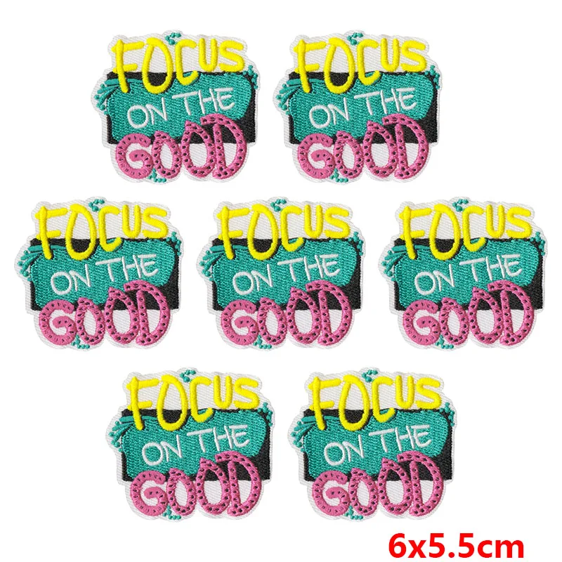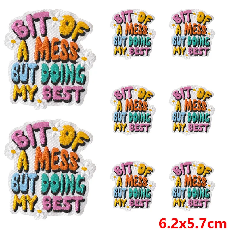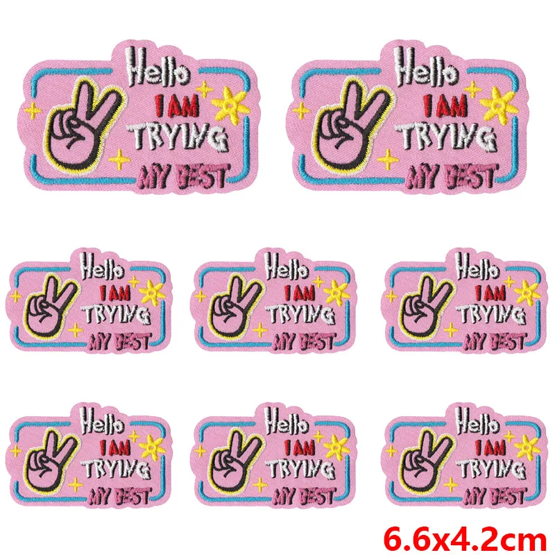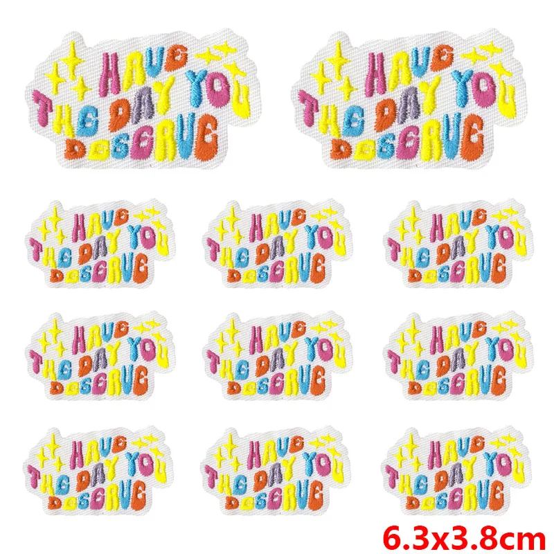 10 unids/lote, venta al por mayor, apliques de frase/texto, parche bordado, parches termoadhesivos para ropa