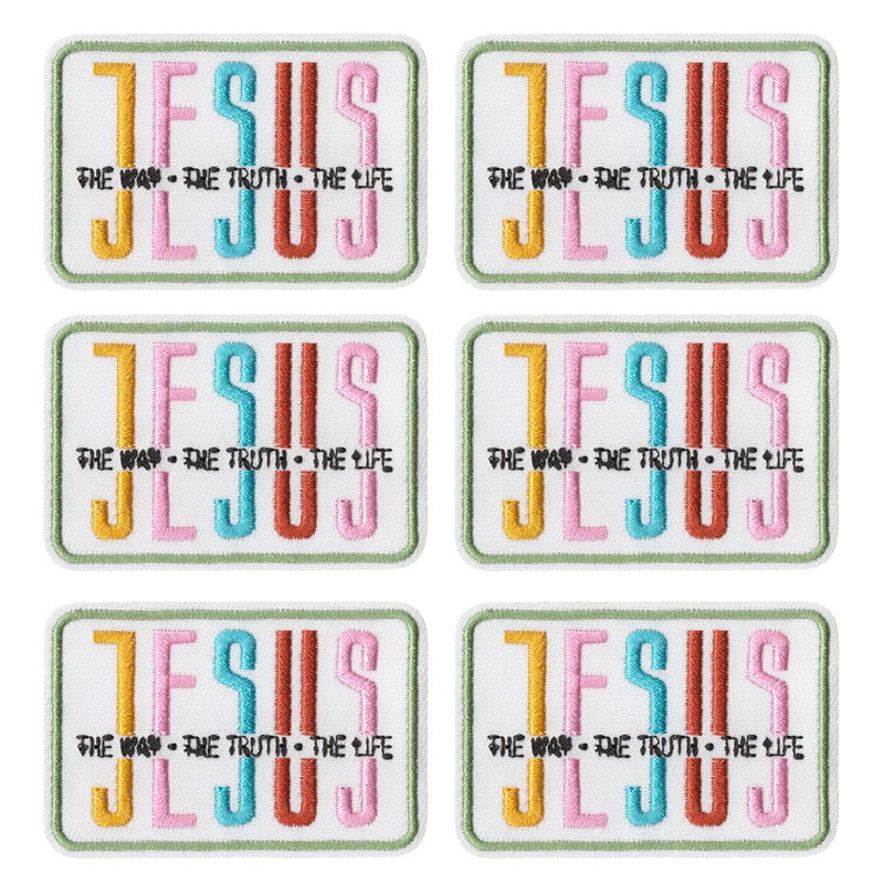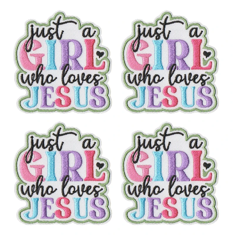 10 unids/lote, venta al por mayor, parche de chica de Jesús, parches bordados con letras de arcoíris de dibujos animados, parches de hierro para ropa, chaquetas, pegatinas