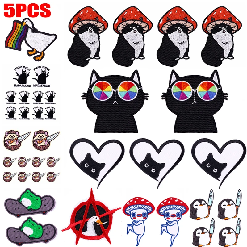 10 unids/lote, venta al por mayor, parches bordados de animales de dibujos animados, parches de hierro para ropa, DIY, gato, rana, erizo, pingüino, parche adhesivo