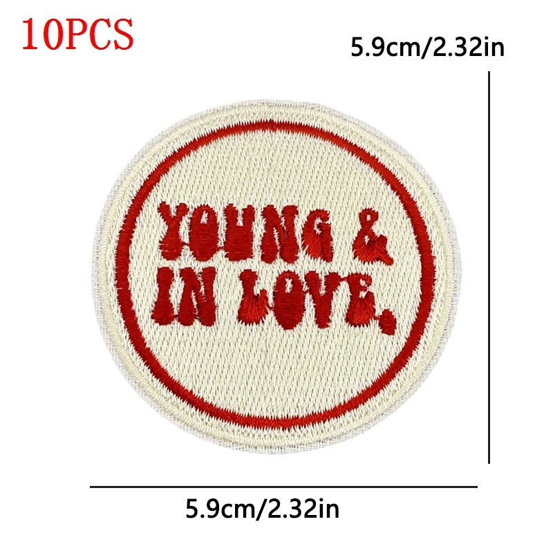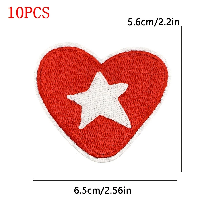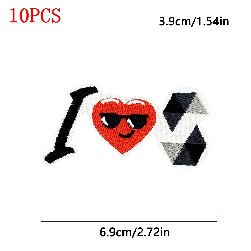 10 unids/lote, venta al por mayor, parches negros y rojos, parches para planchar con inicio de corazón para clithing, parches bordados de labios de amor en accesorios para pantalones vaqueros