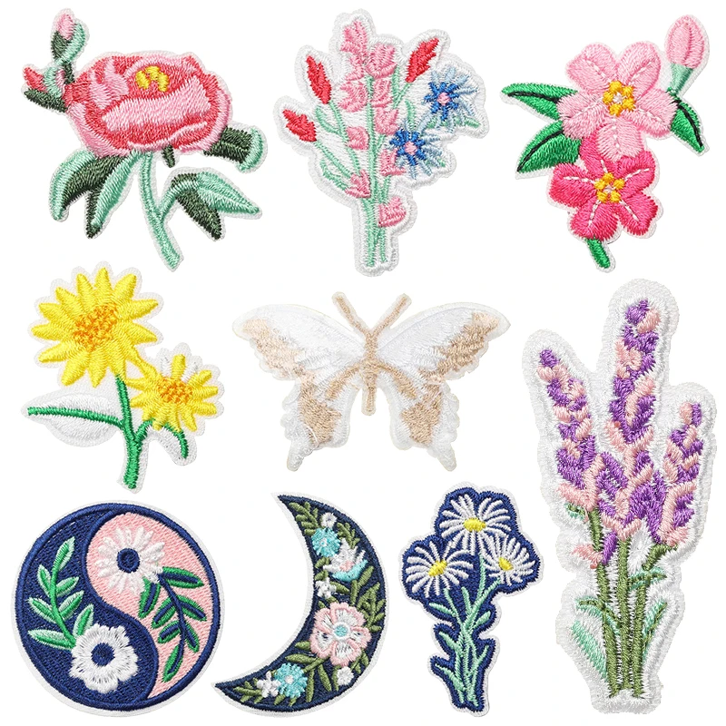 10 unids/lote, venta al por mayor, parches para planchar con flores, lavanda, girasol, parche para planchar para sombrero de vestir, buenos regalos para niñas