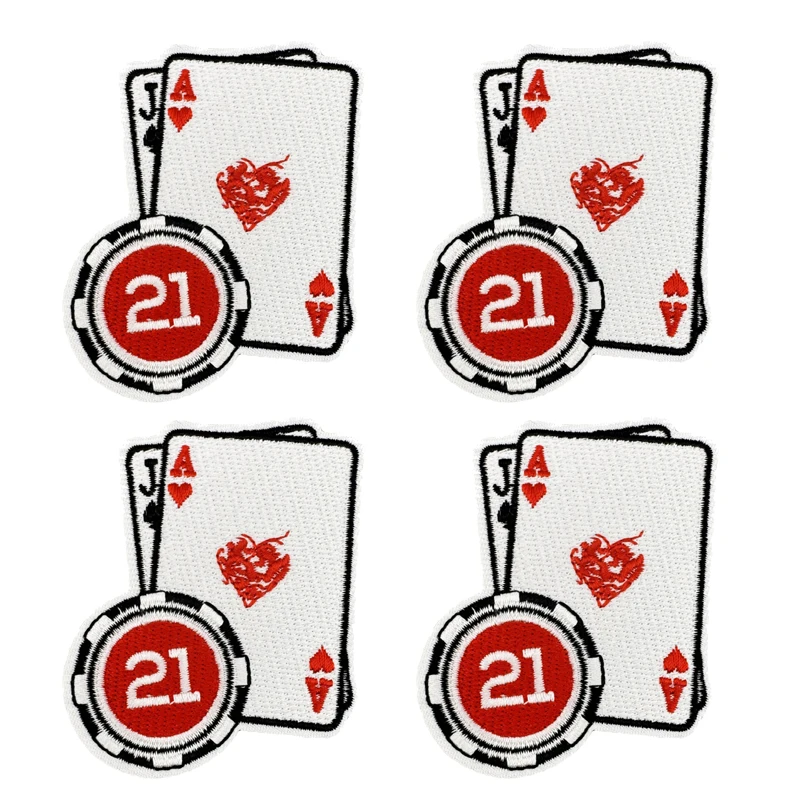 10 unids/lote, venta al por mayor, parches de póquer de llama, sombreros, chaquetas, mochilas, parches bordados, parches para planchar DIY para ropa, insignias de costura
