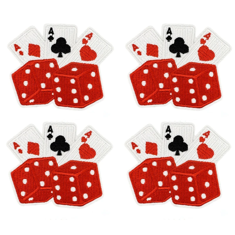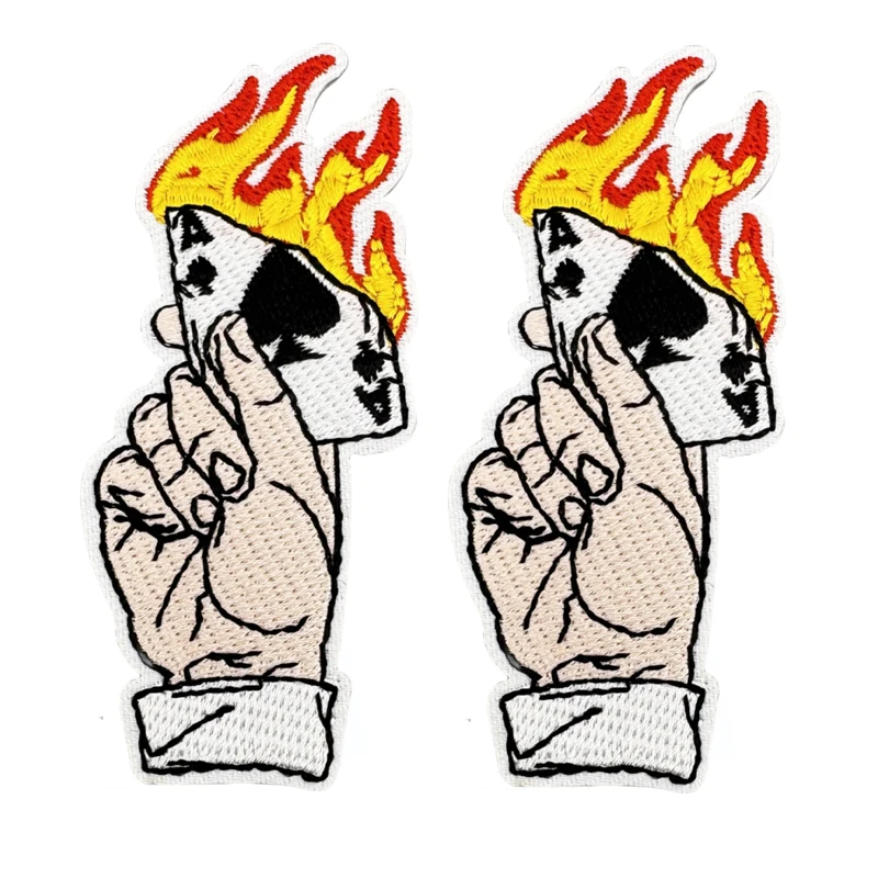 10 unids/lote, venta al por mayor, parches de póker con llamas, sombreros, chaquetas, mochilas, parches bordados, parches para planchar DIY para ropa, insignias de costura