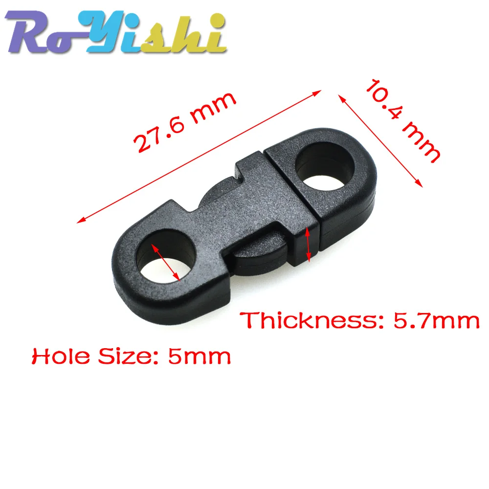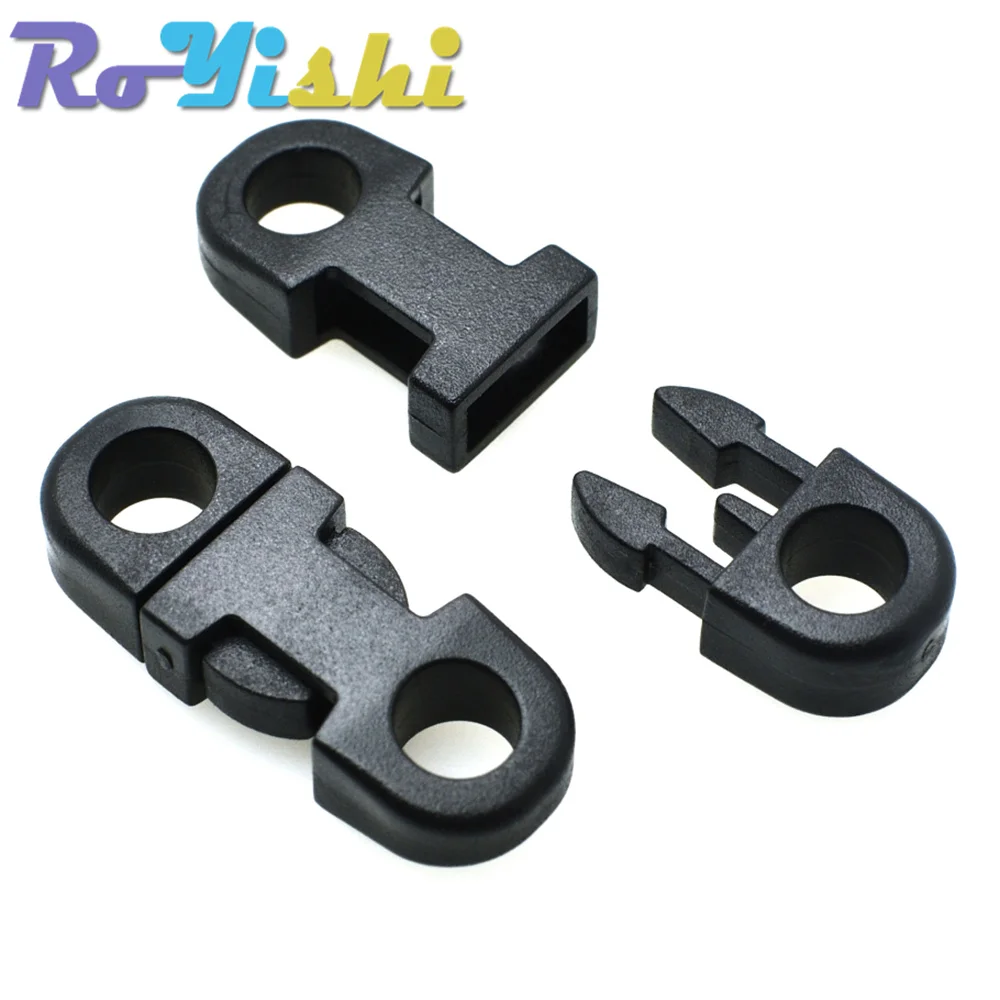 10 unids/pack 5mm agujero diámetro recto plano cierre lateral hebillas de plástico para teléfono móvil Paracord negro