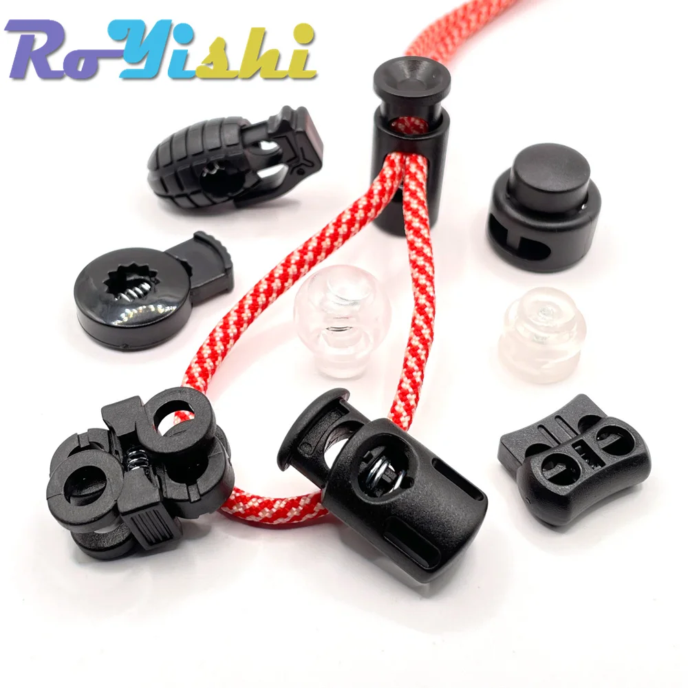 10 unids/pack de bloqueo de cable de orificio simple/doble, tapón de Clip de palanca de plástico negro para bolsas/ropa