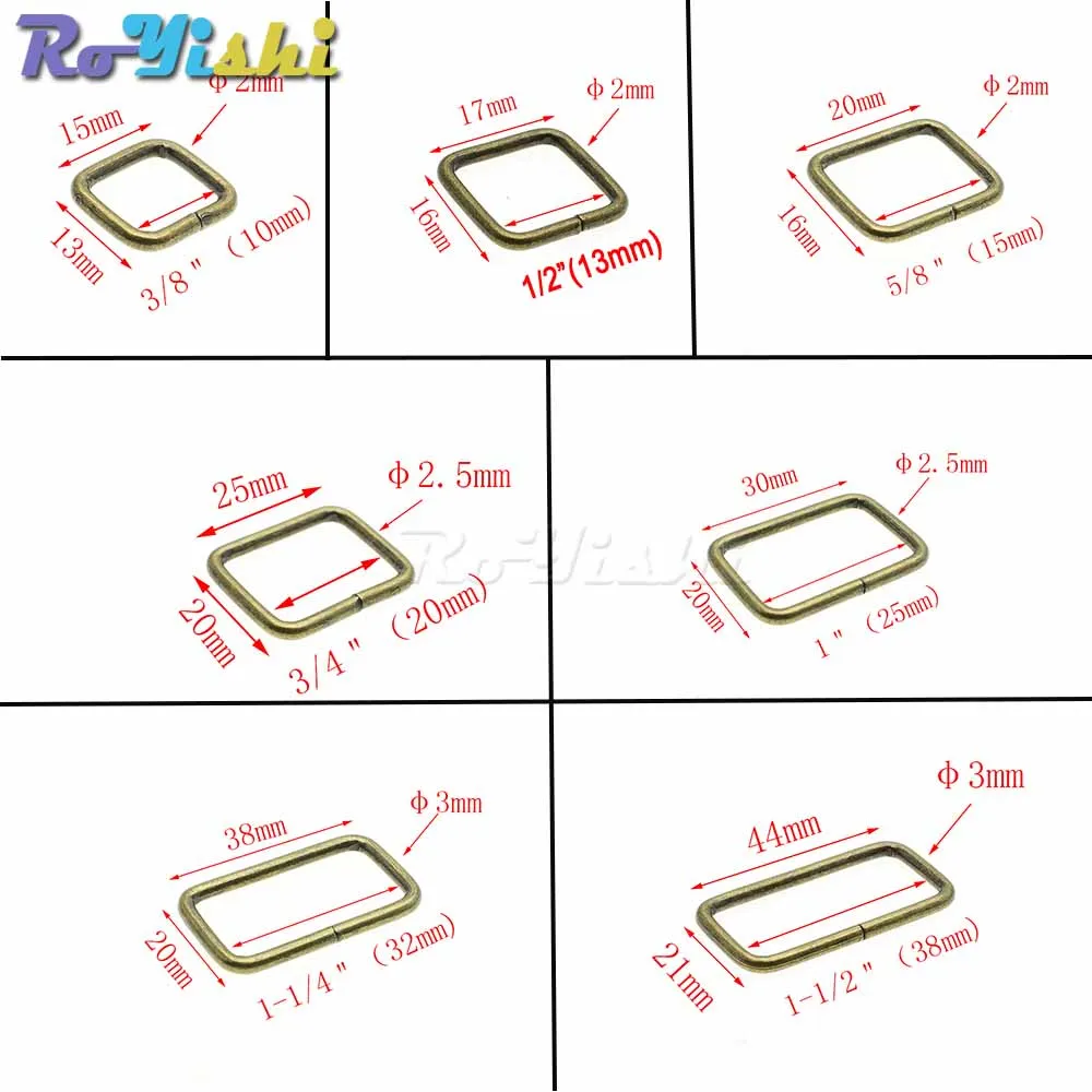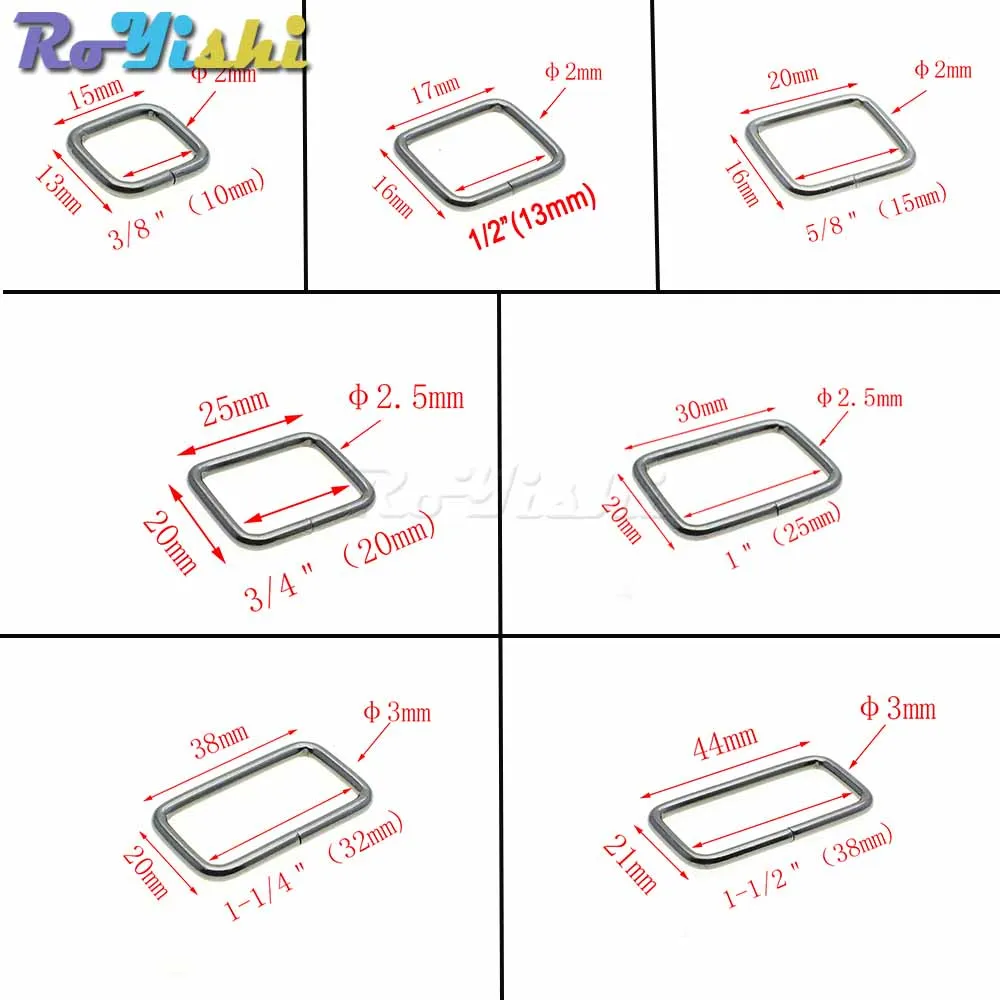 10 unids/pack de bucles de anillo rectangulares formados de alambre de Metal para correas 10 12 15 20 25 32 38mm