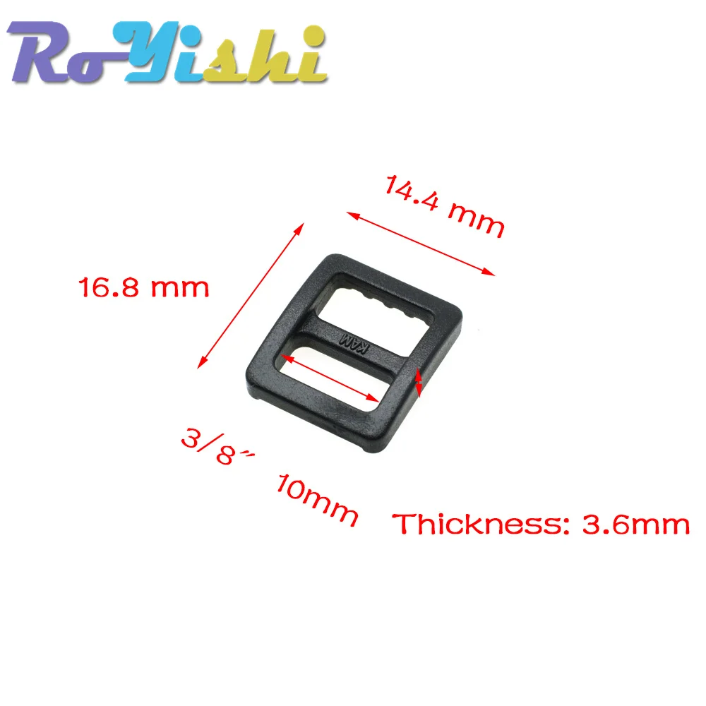 10 unids/pack deslizador de plástico Tri Glide ajustar hebillas correas de mochila de estilo más ancho negro
