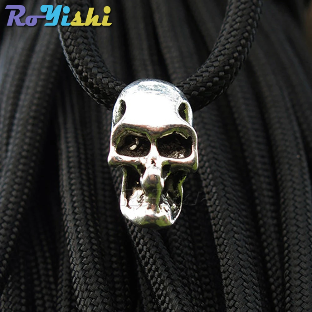 10 unids/pack doble agujero encanto Metal cráneo cuenta para Paracord cuchillo cordones plata