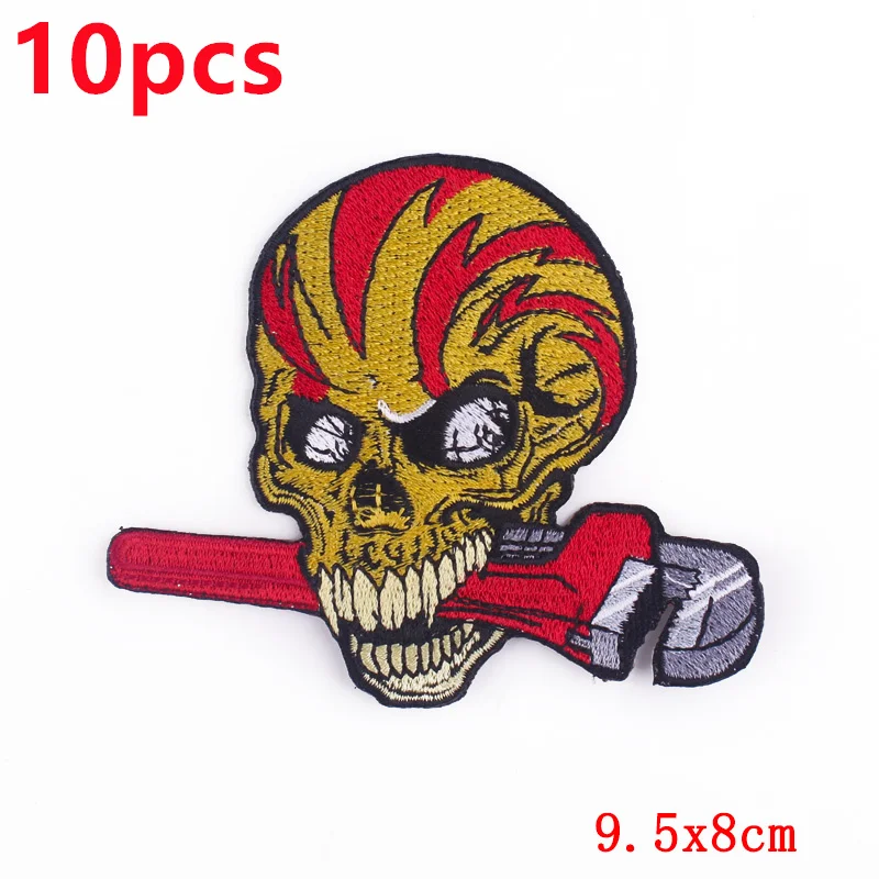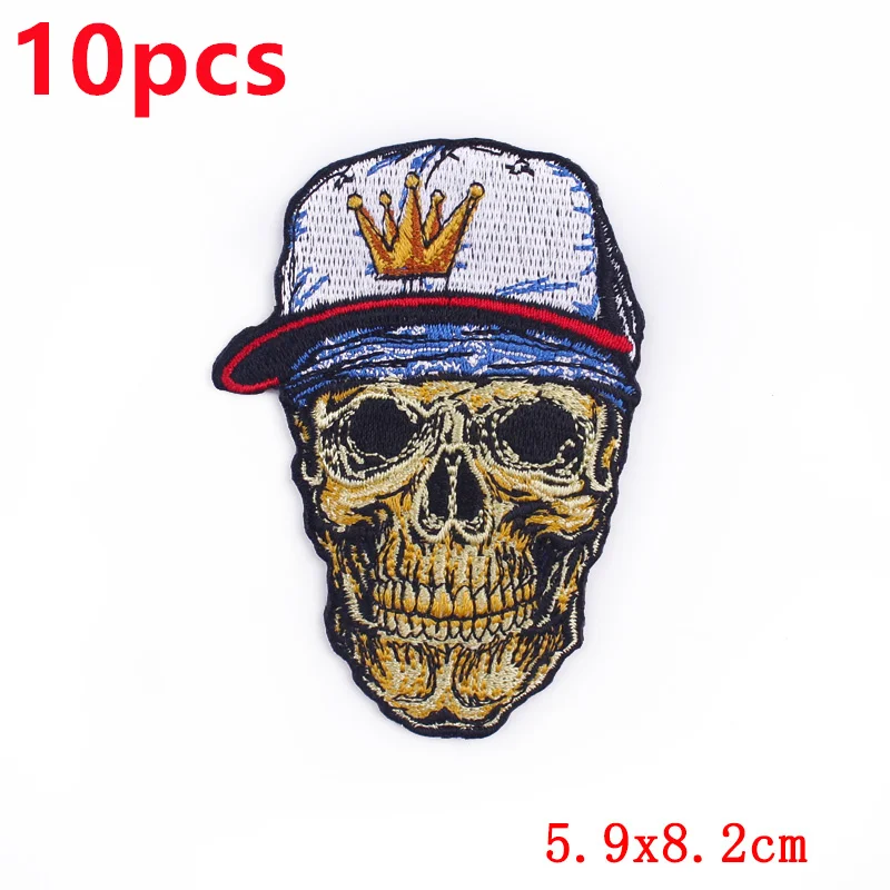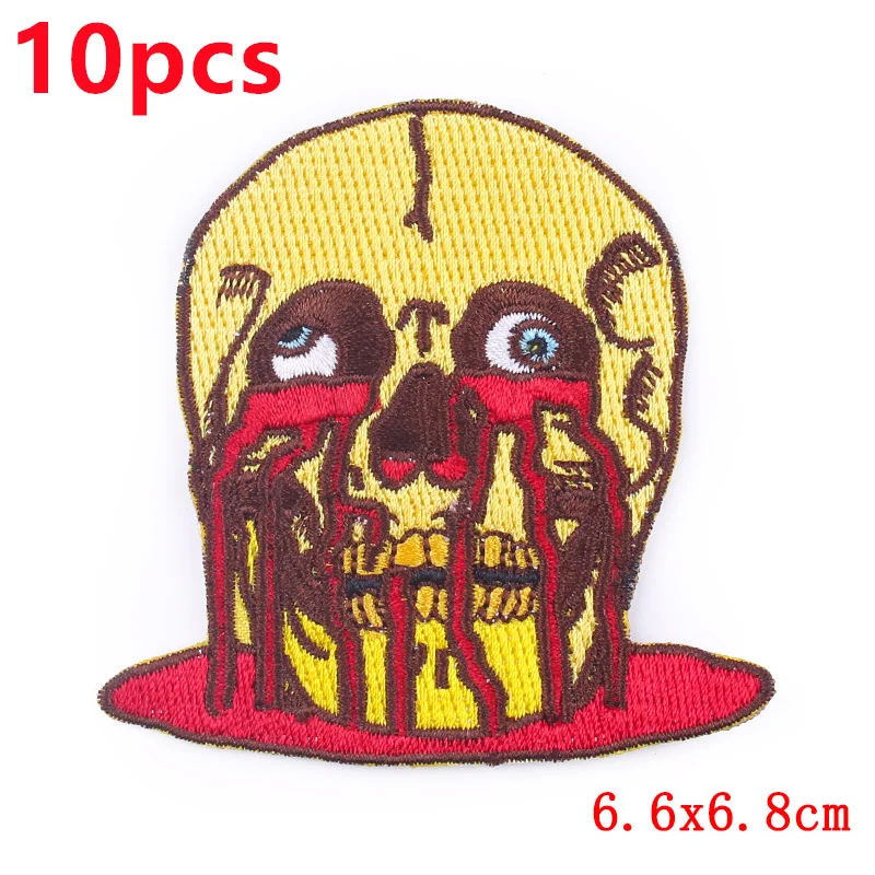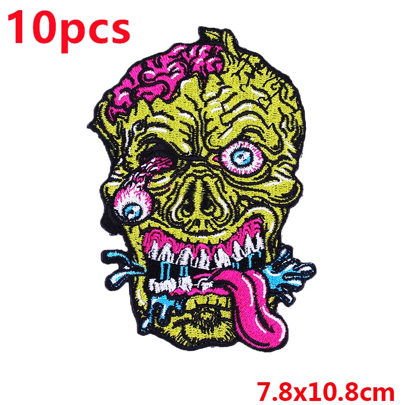 10 unids/pack de parches bordados de calavera de terror en ropa León fusible hierro en parche para ropa coser apliques en sombreros DIY